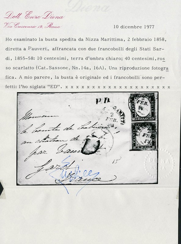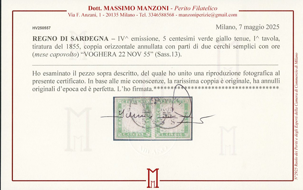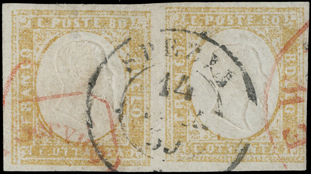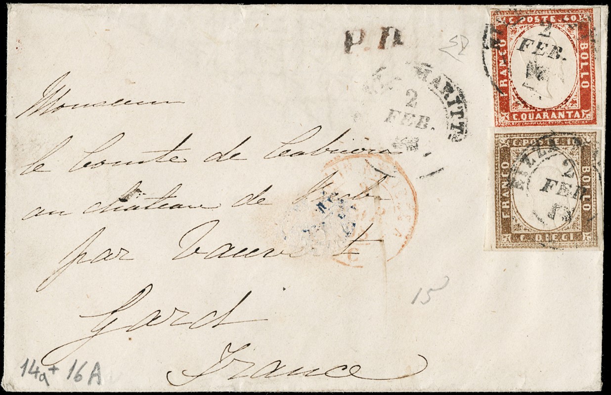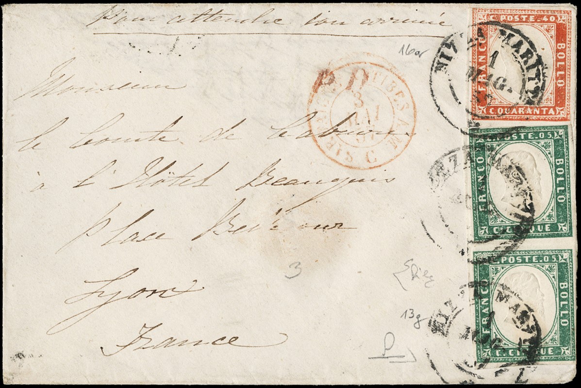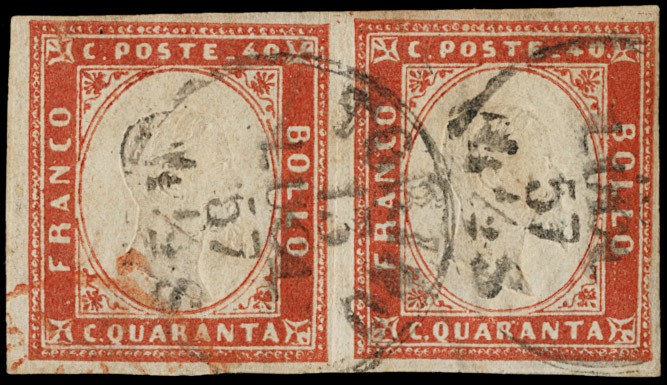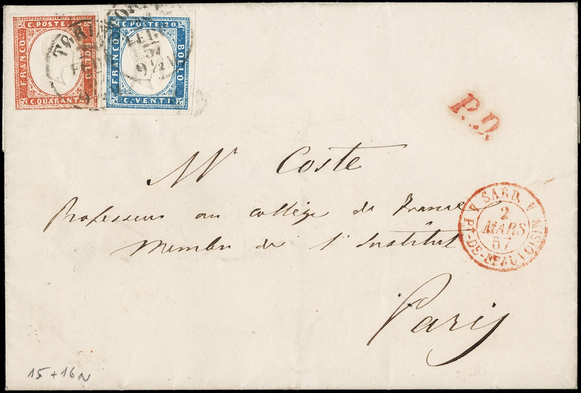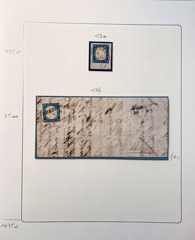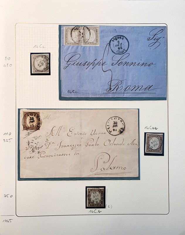 1855/61 - SARDEGNA: avanzatissima collezione dei colori della IV emissione, composta da francobolli nuovi, usati e su lettera. Sono presenti molti colori rari, alcune strisce, blocchi e affrancature. Elevatissimo valore di catalogo, 35 CF. Irripetibile in