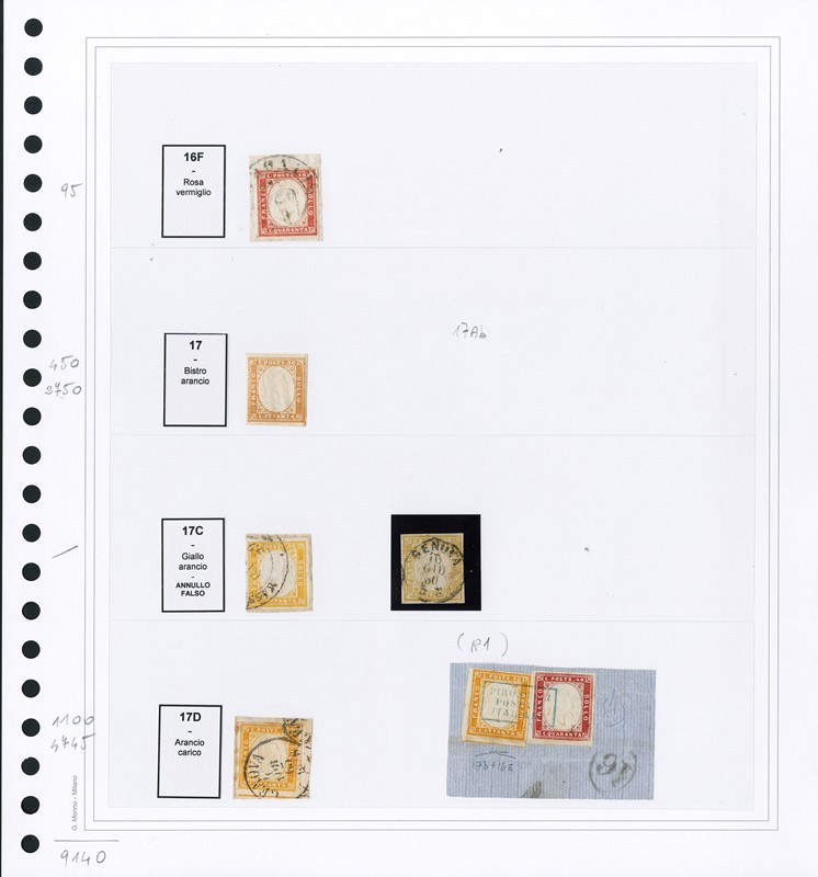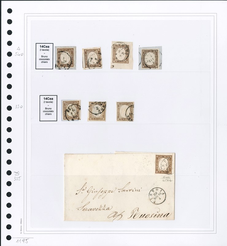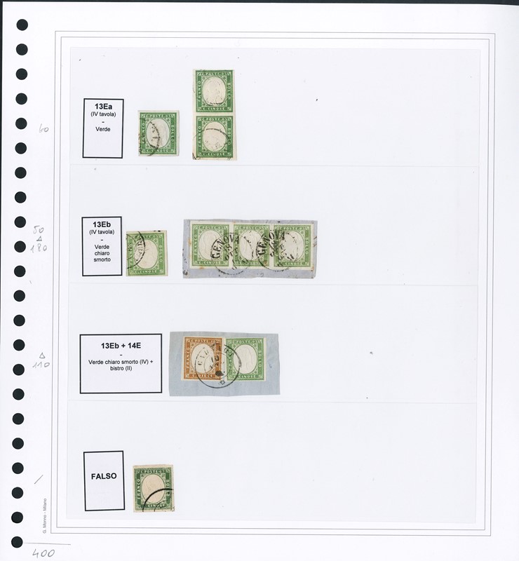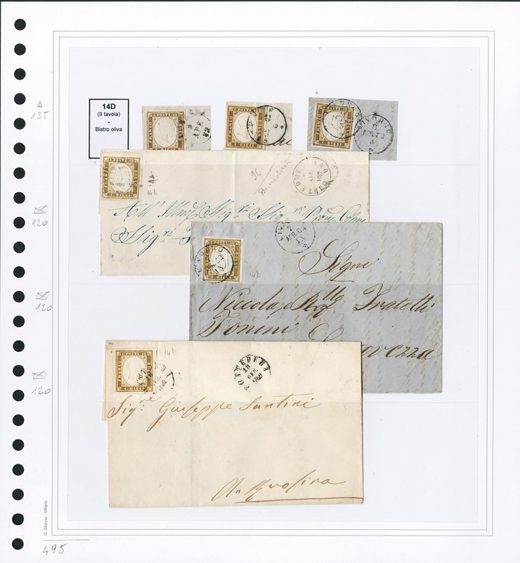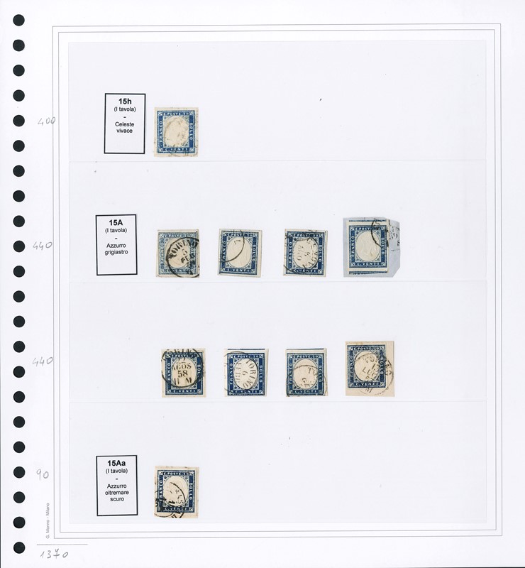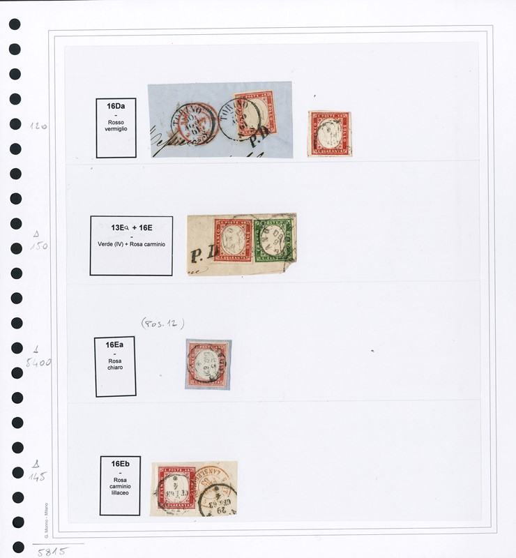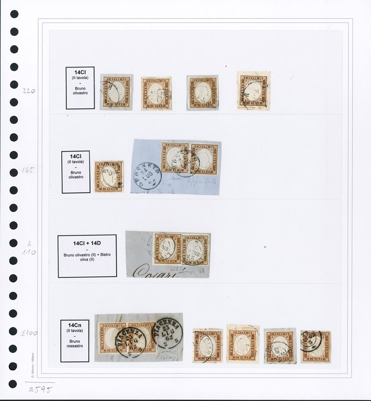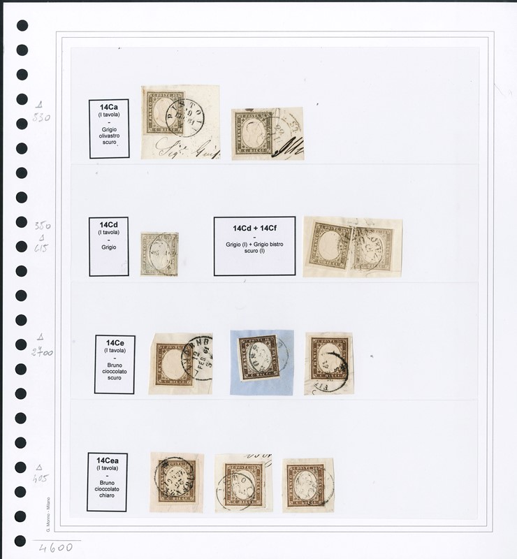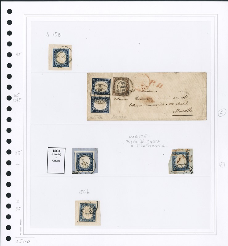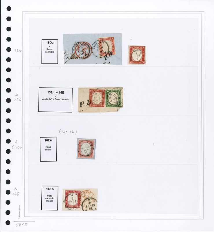 1855/61 - SARDEGNA: classificatore con collezione della IV emissione, composta da francobolli usati, su frammento e su lettera. Presenti numerosi esemplari pregiati e rari. Qualita' mista, in genere ottima. Altissimo valore di catalogo. 23 CF (Sassone Eur