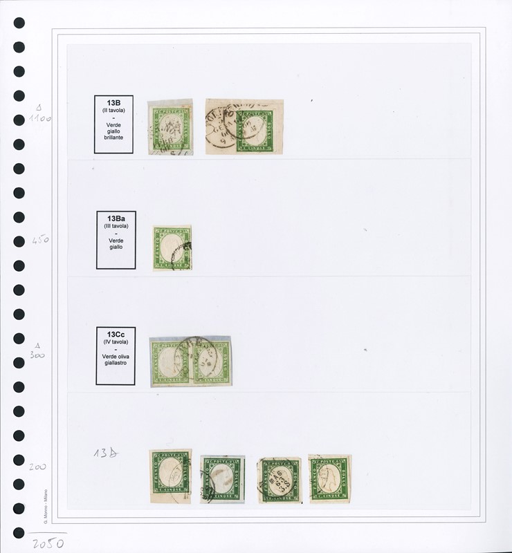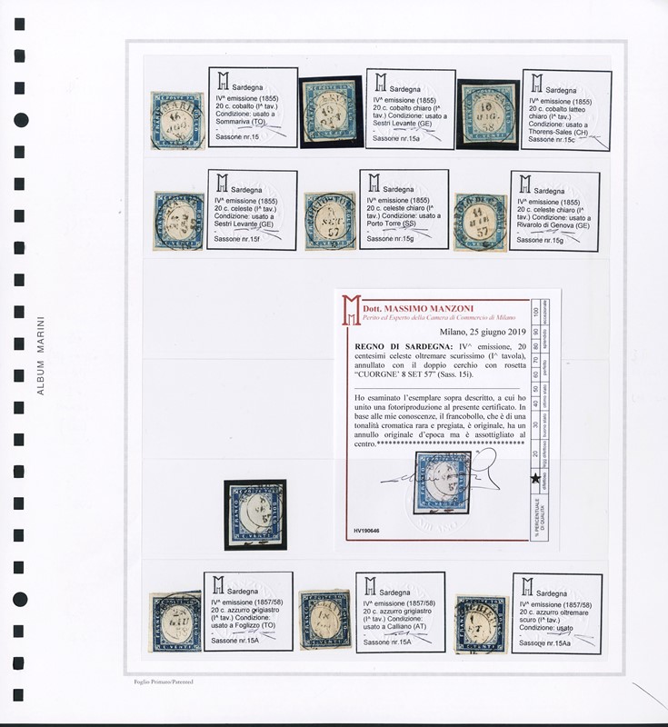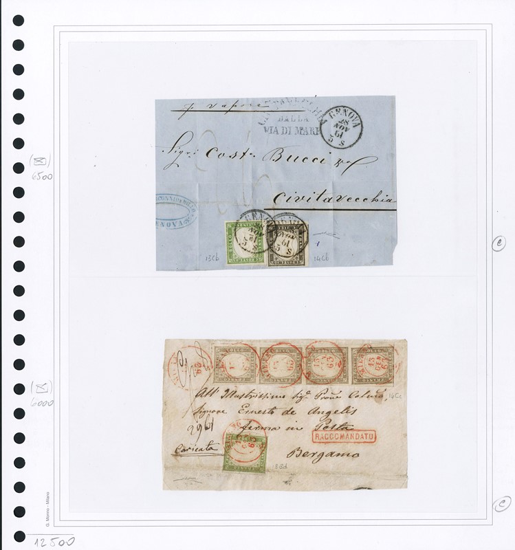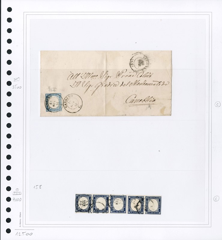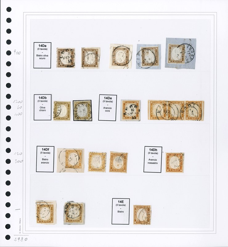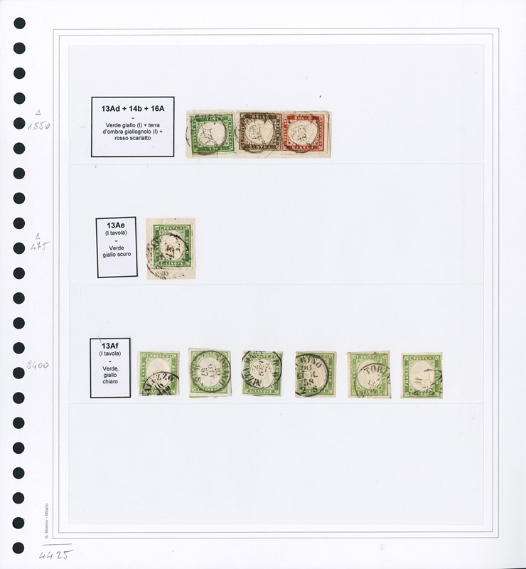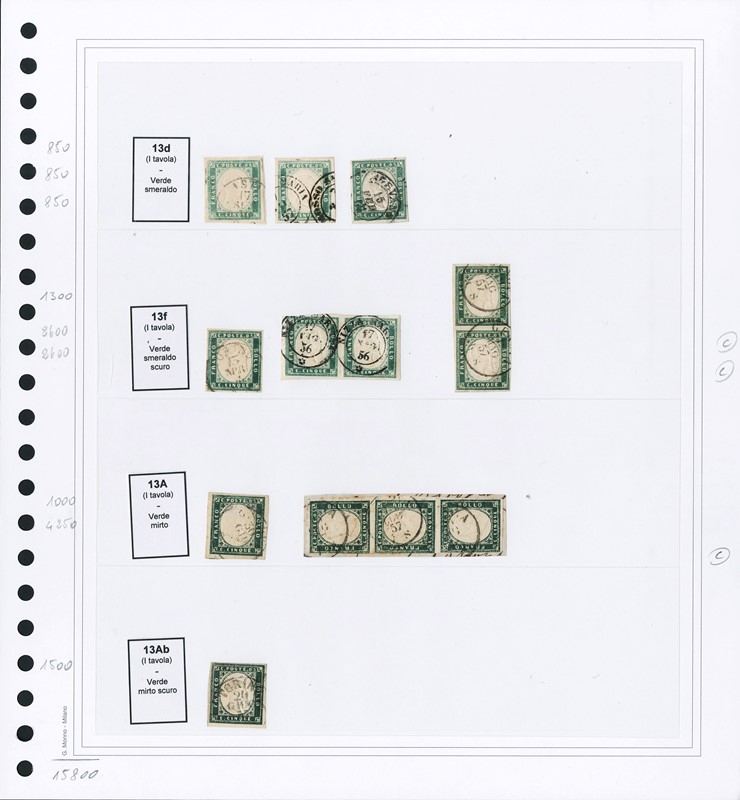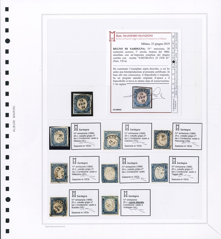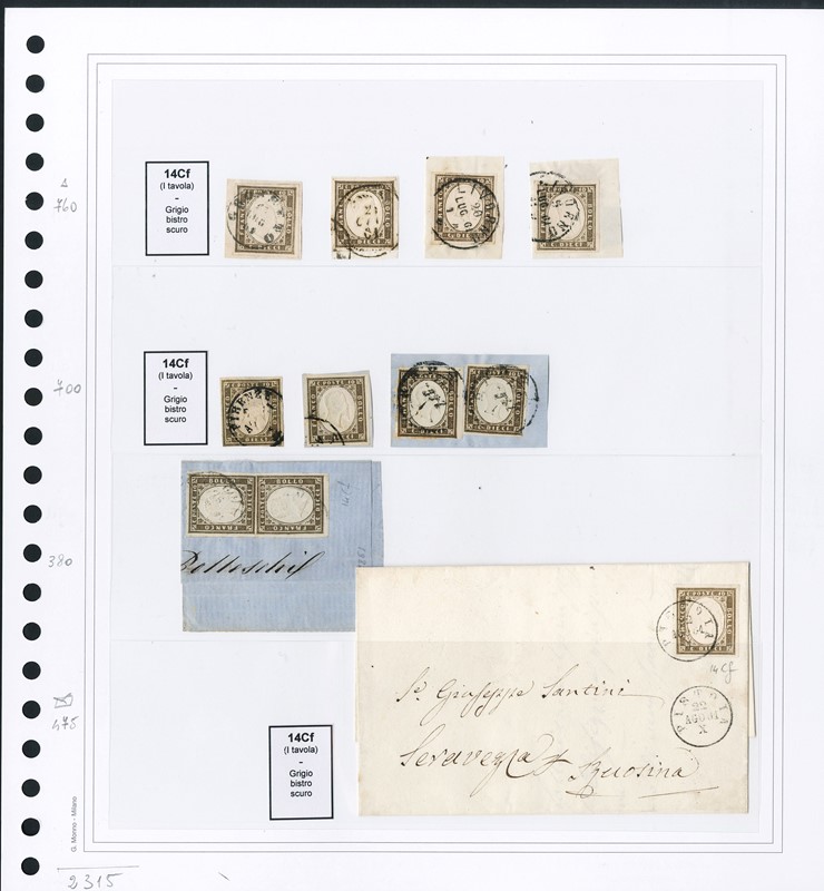 1855/61 - SARDEGNA: classificatore con collezione della IV emissione, composta da francobolli usati, su frammento e su lettera. Presenti numerosi esemplari pregiati e rari. Qualita' mista, in genere ottima. Altissimo valore di catalogo. 23 CF (Sassone Eur