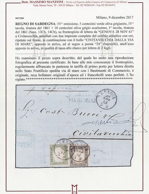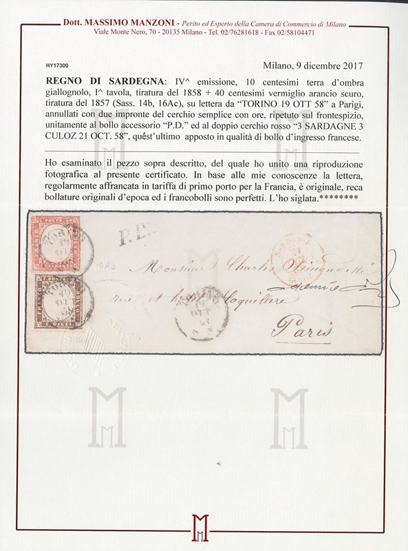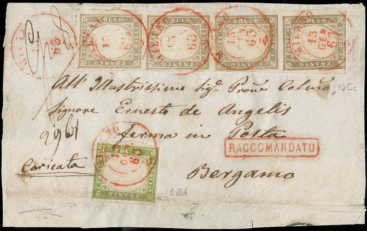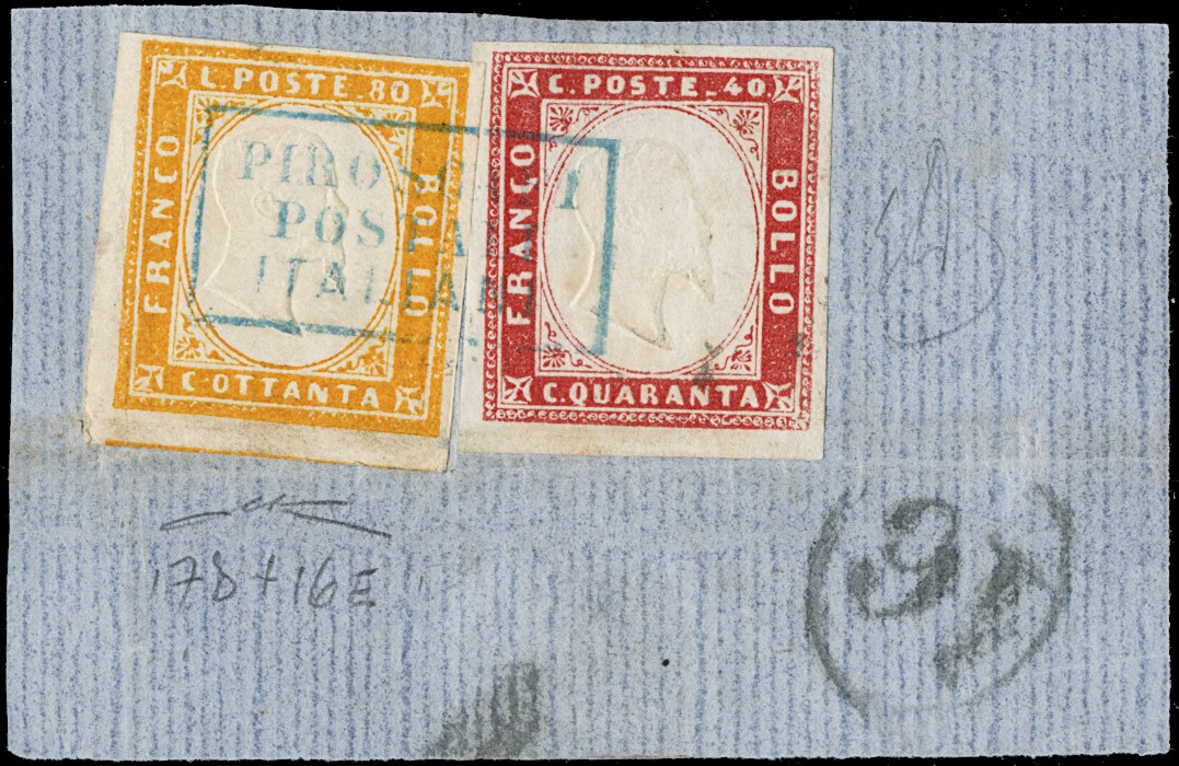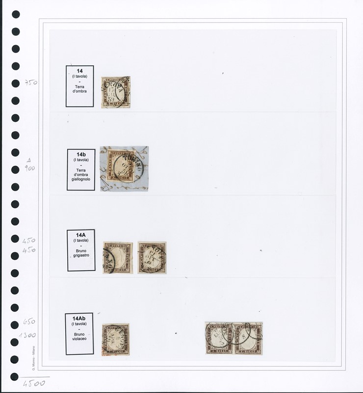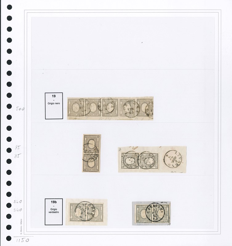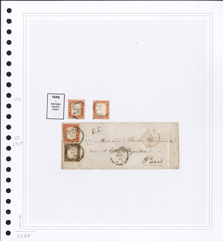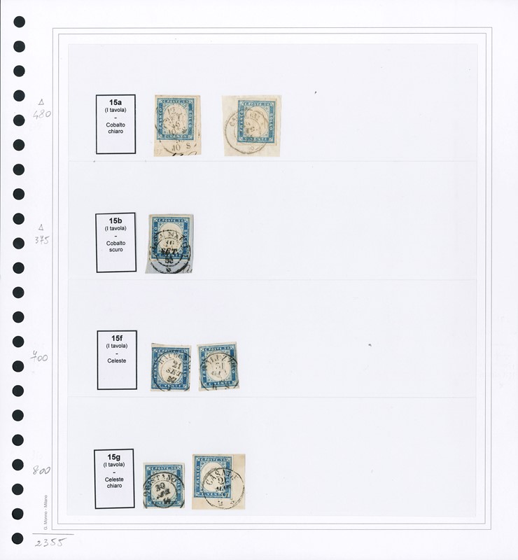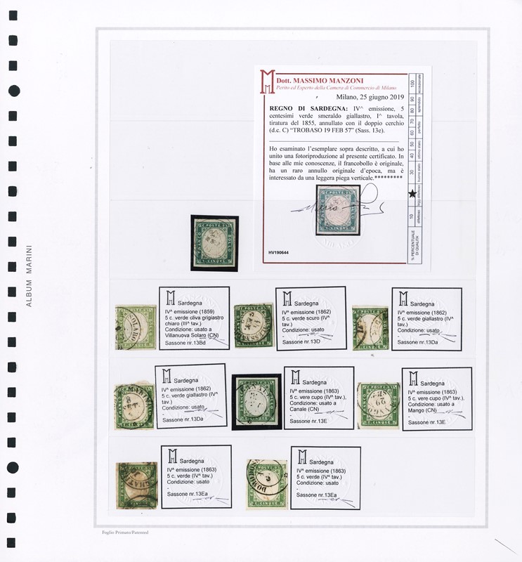 1855/61 - SARDEGNA: classificatore con collezione della IV emissione, composta da francobolli usati, su frammento e su lettera. Presenti numerosi esemplari pregiati e rari. Qualita' mista, in genere ottima. Altissimo valore di catalogo. 23 CF (Sassone Eur