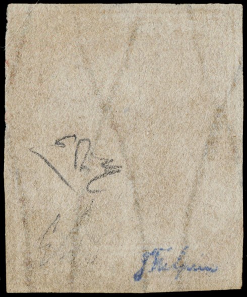 1857 - 1s ocra con margini bianchi e annullo rosso