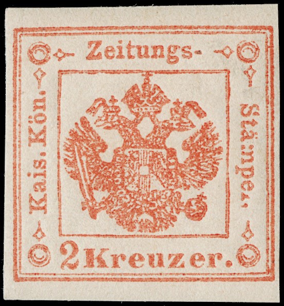 1858 - 2kr vermiglio nuovo con gomma integra. Sigla A.Zanaria e A.Diena (Sassone SG3 - Euro 3.600)