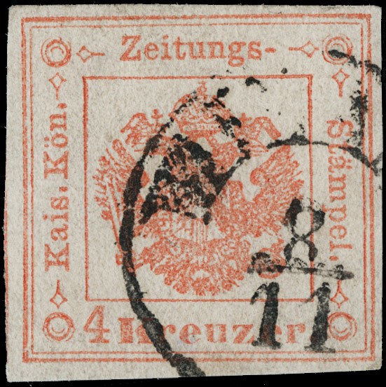 1858 - 4kr rosso smorto annullato 'MILANO 8/11' (5