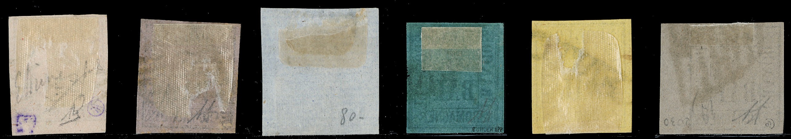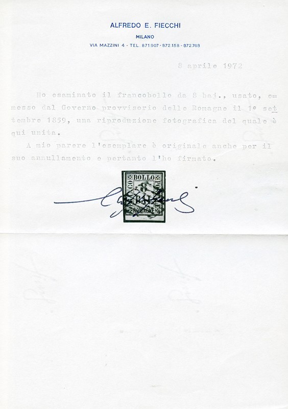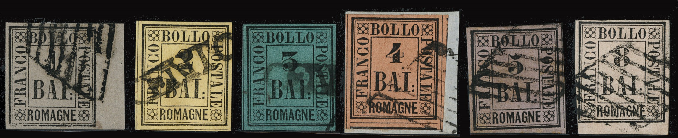 1859 - sei valori usati, tutti molto ben marginati. Alcuni siglati Em. e A.Diena, CF Fiecchi per l'8b (Sassone 2/6+8 - Euro 6.100 )