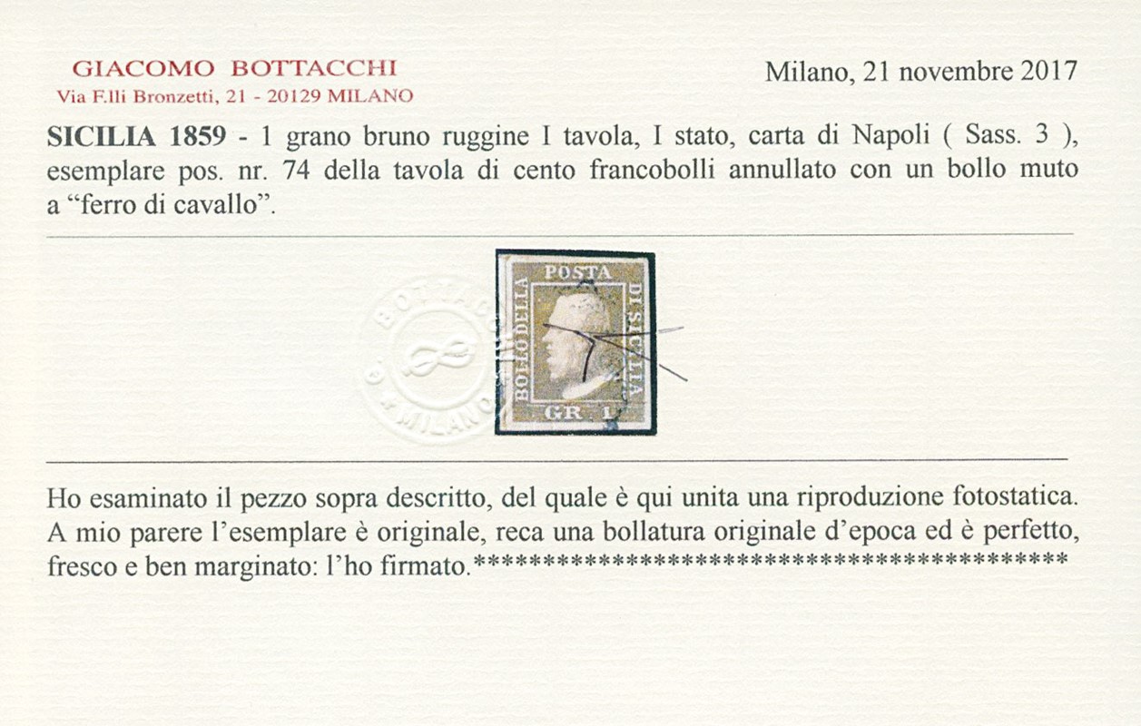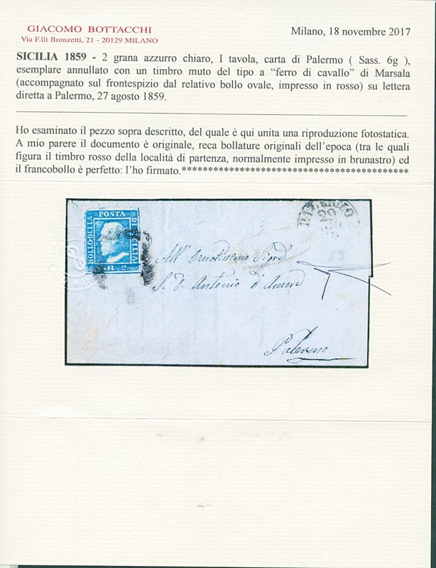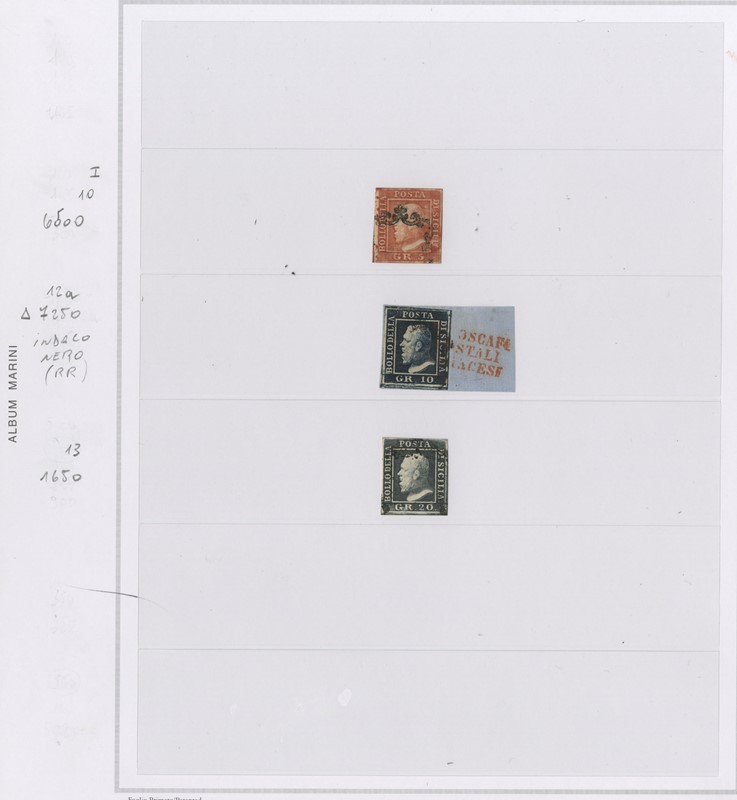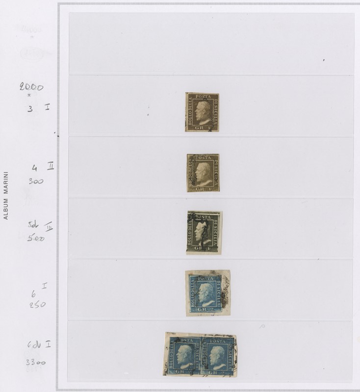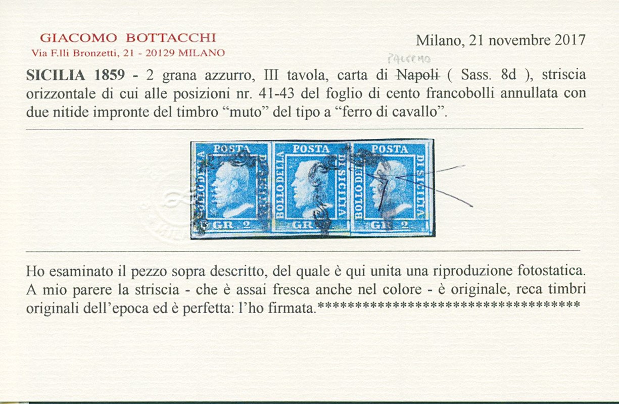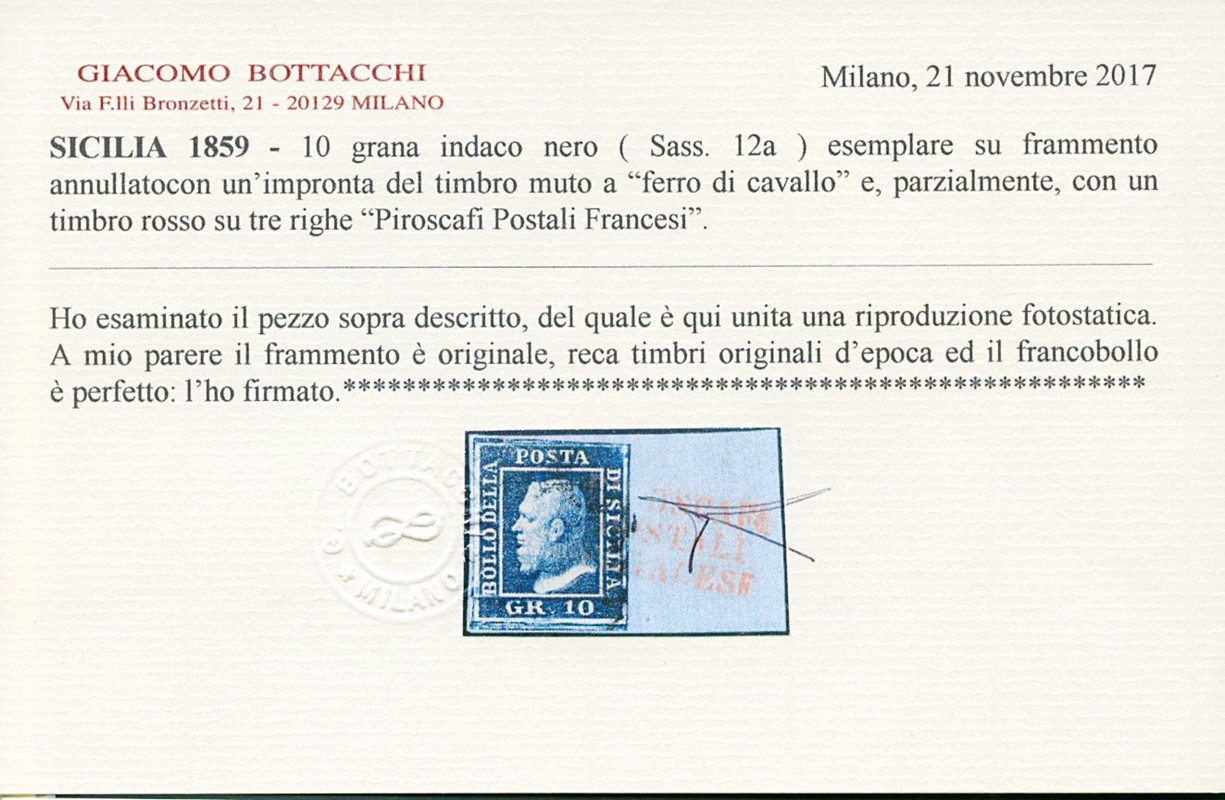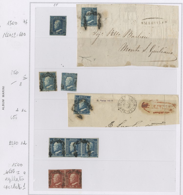1859 - SICILIA: insieme di francobolli usati, su frammento e su lettera, con pregiate e interessanti presenze. Qualita' mista, in genere molto buona. 7 CF Bottacchi