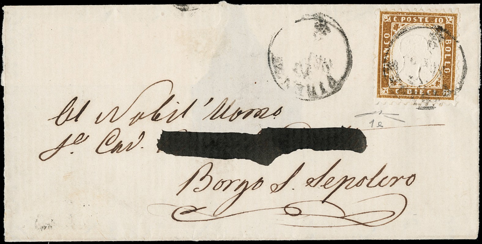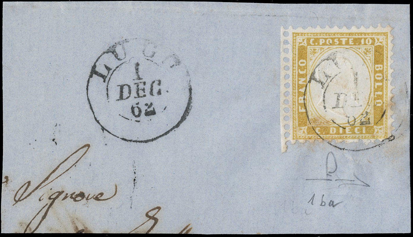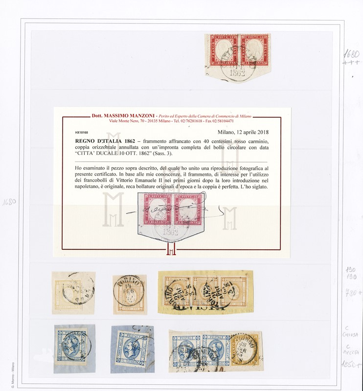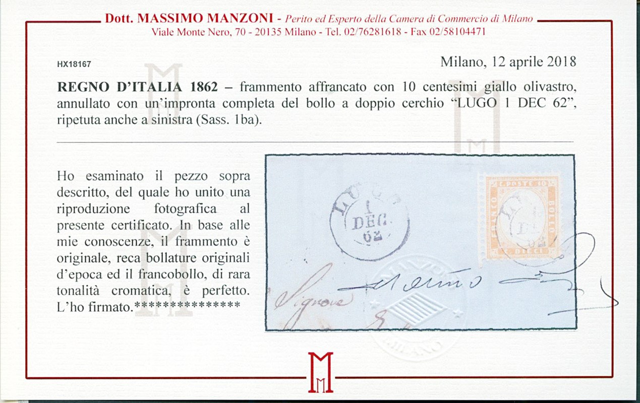1862/63 - REGNO D'ITALIA: insieme di francobolli su frammento e su lettera. Notate alcune affrancature miste fra le quali un frammento con un 20c dentellato e un 10c di Sardegna IV con annullo di Mazzara, a oggi non quotato sui francobolli d'Italia, e un