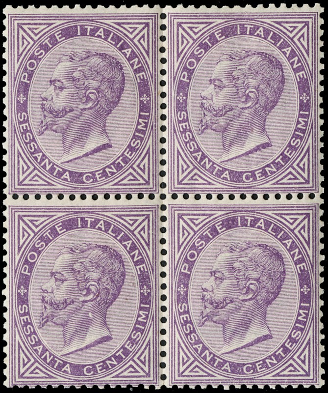 1863 - 60 lilla intenso violaceo BL4 SL, discreta/