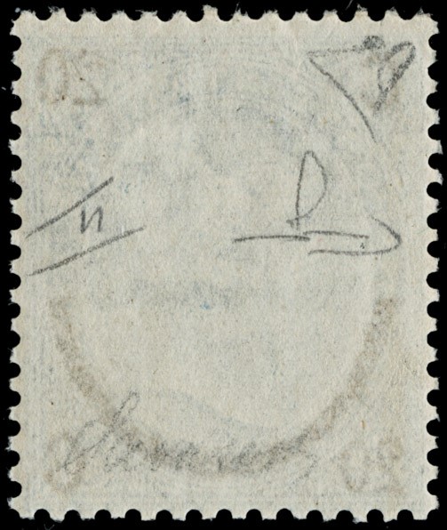1865 - 20c su 15c azzurro, ferro di cavallo II tip