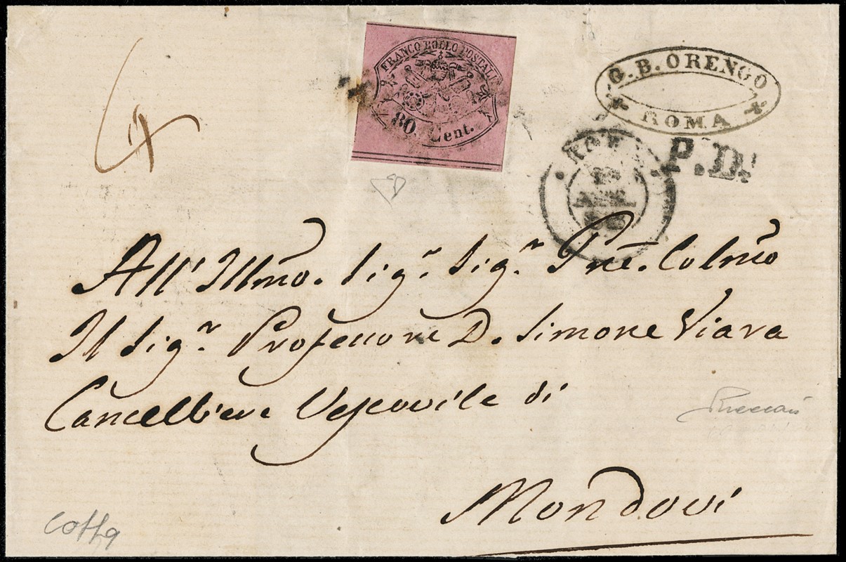 1867 80c rosa lillaceo, da 'ROMA 10 APR 68' a Mo