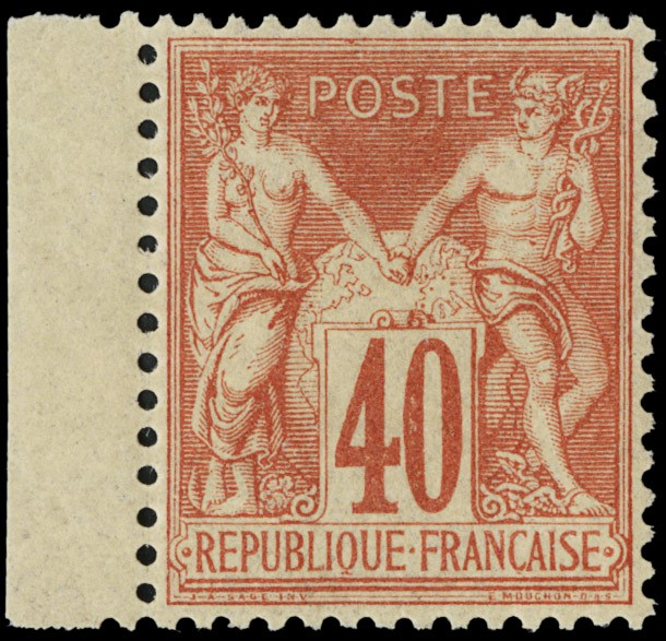 1878 - Francia: Pace e Commercio, 40c arancio rosso (I), BDF a sinistra, ben centrato, SL (Yvert 70 - Euro 2.025)