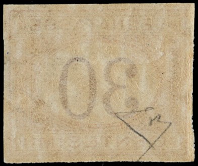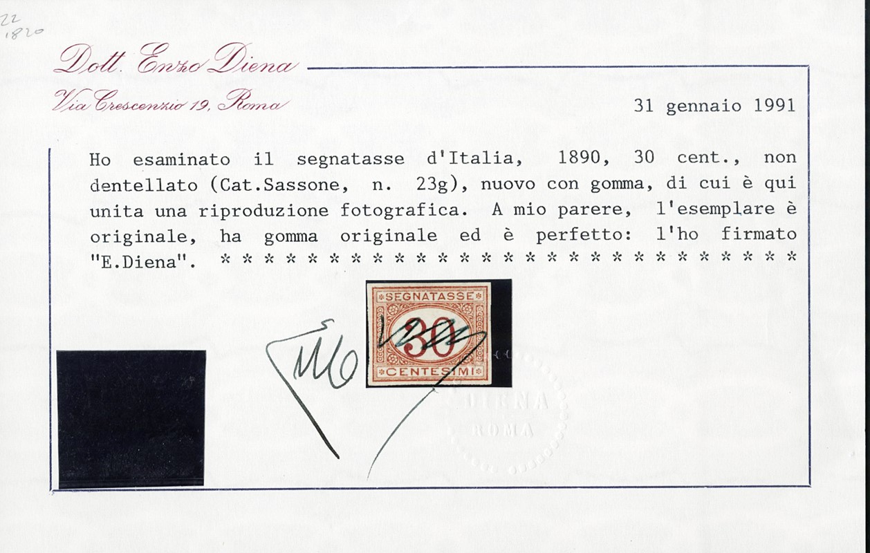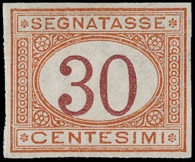 1890 - 30c arancio e carminio, non dentellato, TL leggerissima. CF E.Diena (Sassone T23g - Euro 5.500)