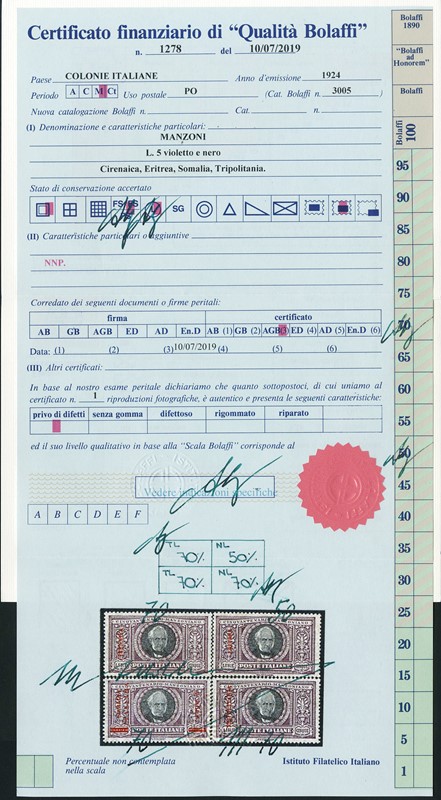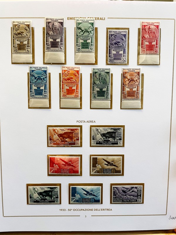 1910/41 - COLONIE ITALIANE: importante inizio di collezione di francobolli nuovi SL di PO e PA, montata su fogli con taschine Bolaffi in quattro volumi. 14 CF Bolaffi e 1 CF Diena (Sassone Euro 117.000+)