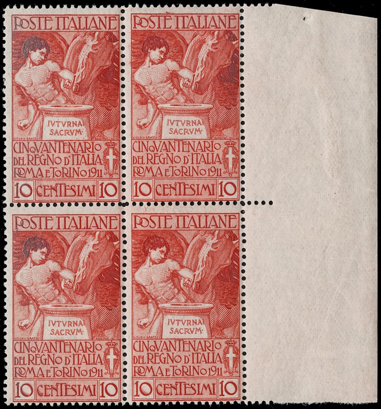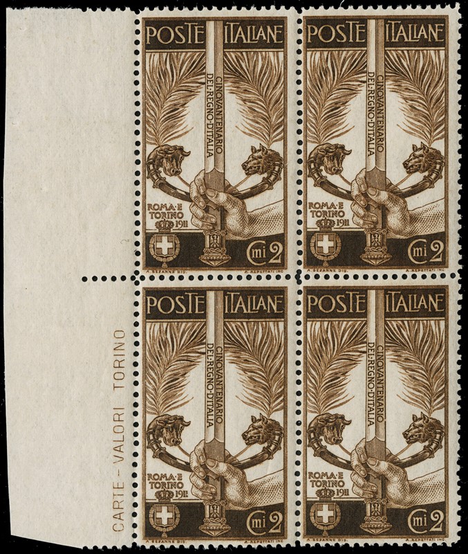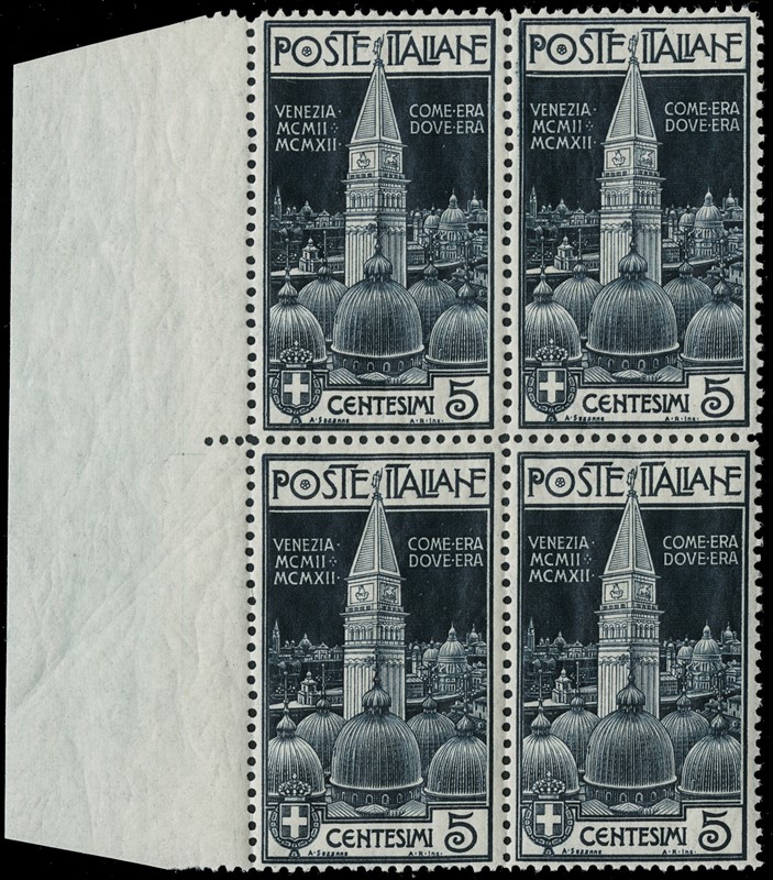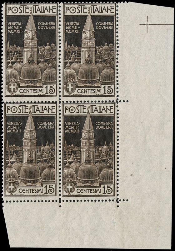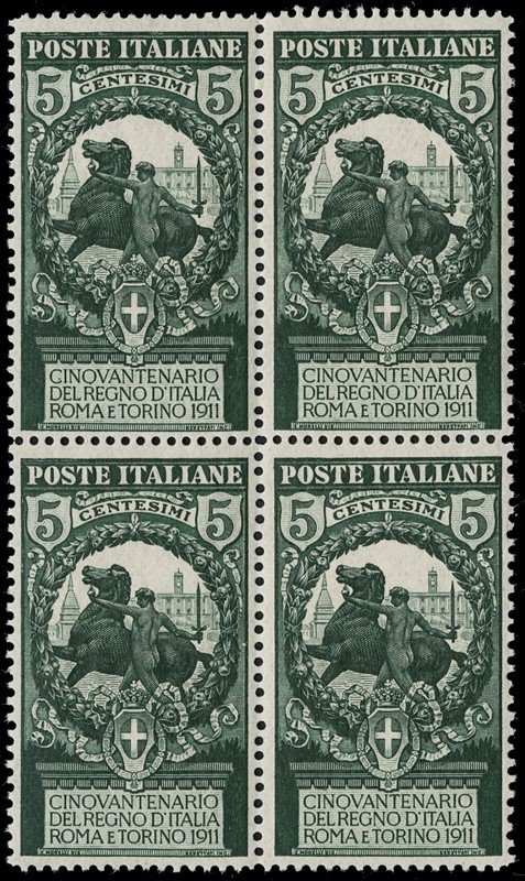1911/12 - Cinquantenario Unita' d'Italia e Campanile di S. Marco, le due serie complete in BL4 SL, molti con BdF o AdF (Sassone 92/95, 97/98 - Euro 3.250 + 2.700 = Euro 5.950+ come sciolti)