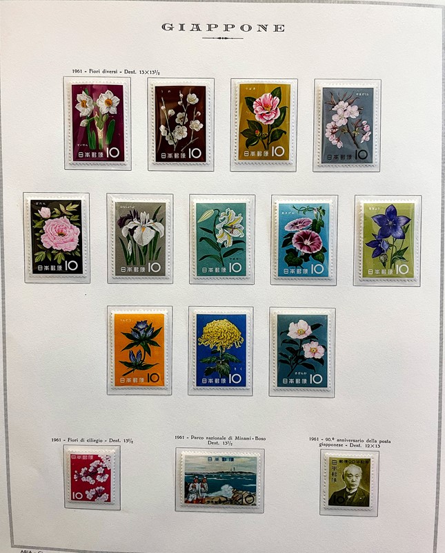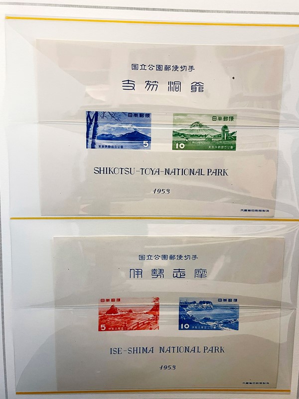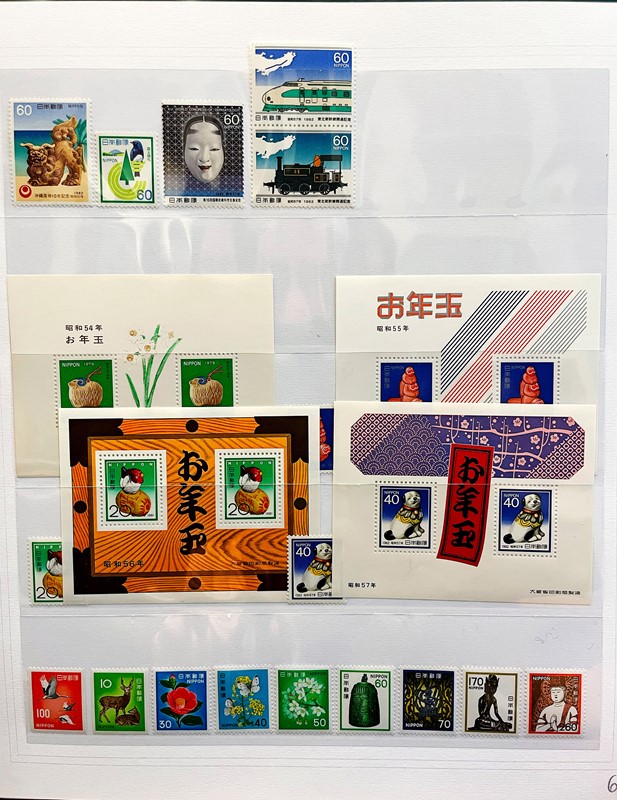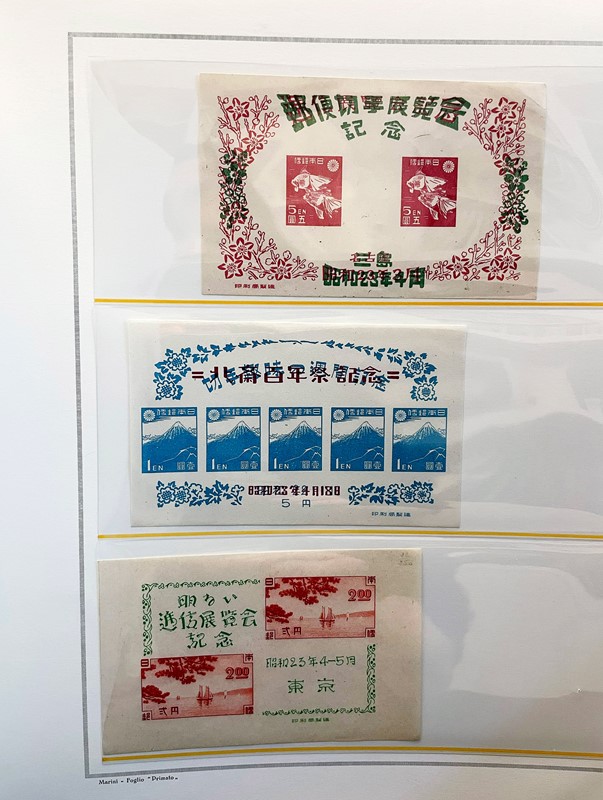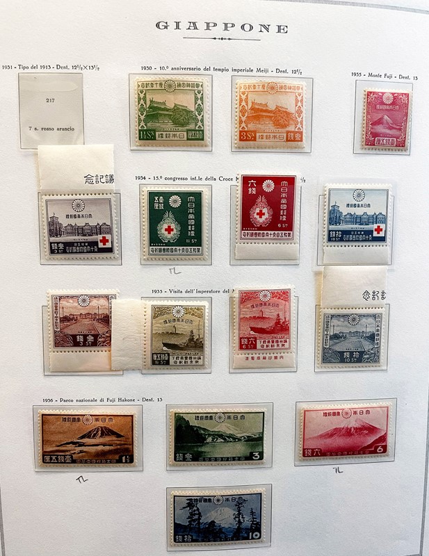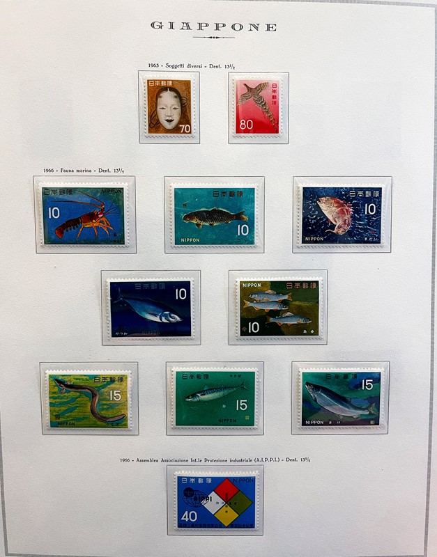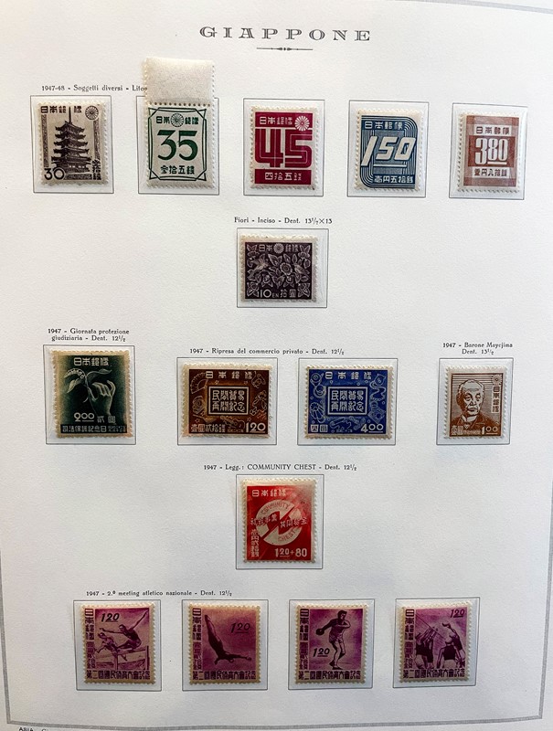 1928/2015 - GIAPPONE: collezione quasi completa di francobolli nuovi prevalentemente SL di PO e PA dal 1928 al 1977 piu' alcuni esemplari nuovi fino al 1982 raccolti in due album su Fogli Marini (Yvert - Euro 9.200 circa) e Foglietti e Minifogli dal 1934
