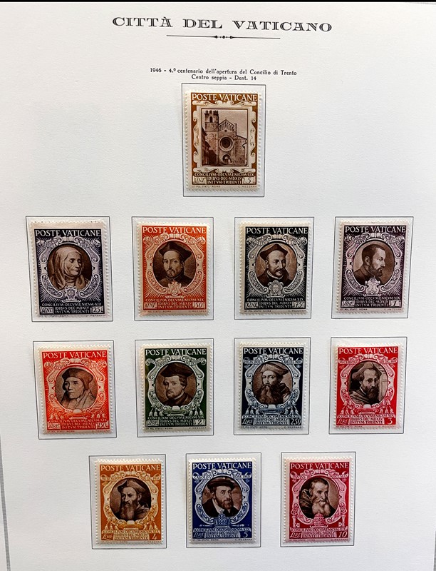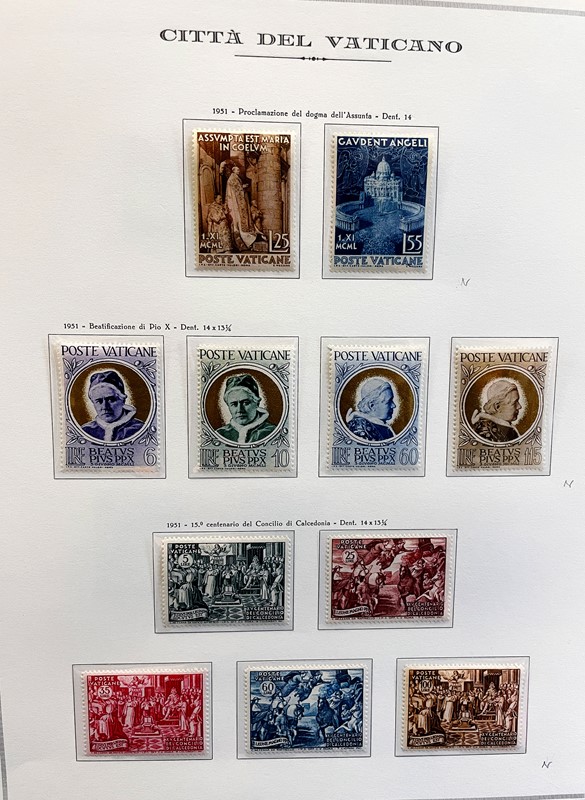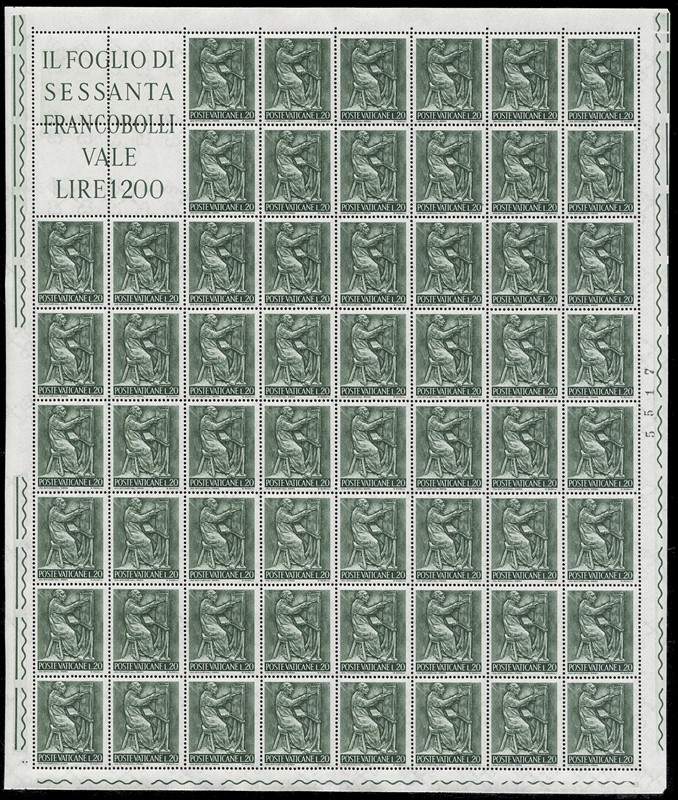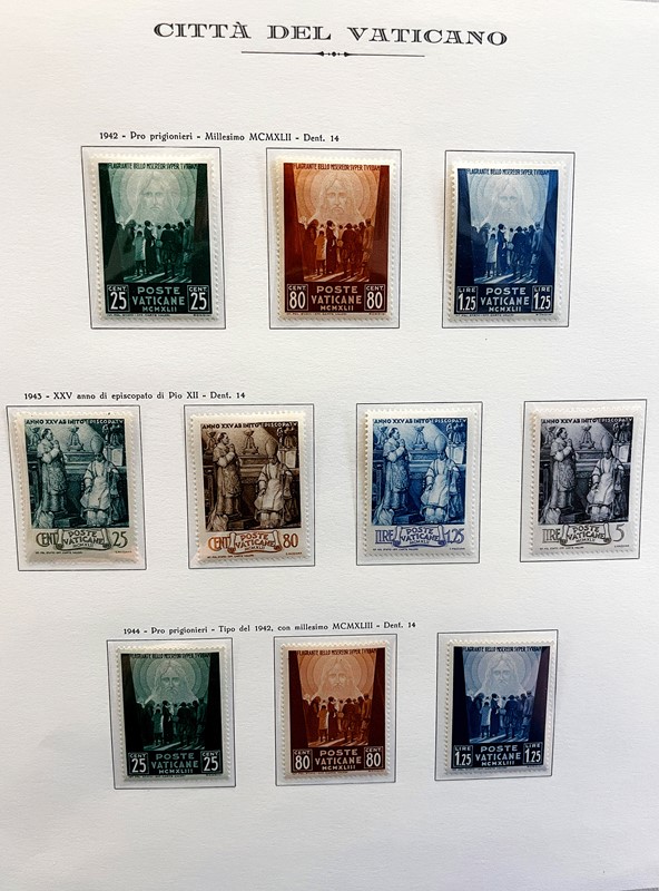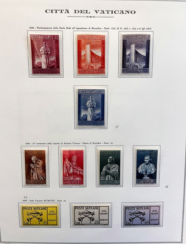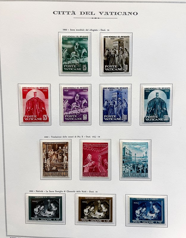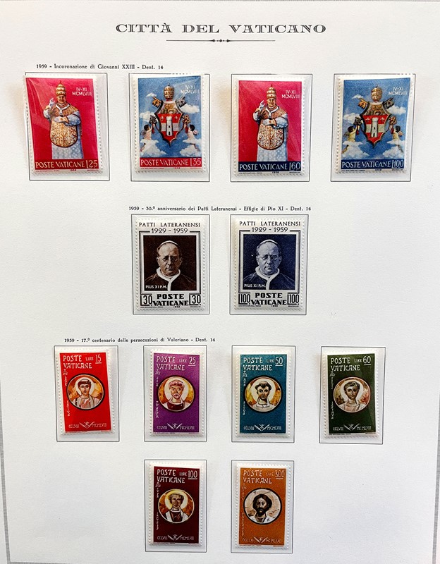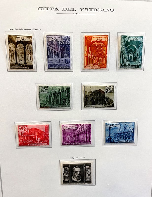 1929/2015 - VATICANO: collezione praticamente completa di francobolli nuovi SL di PO, PA e servizi, con tutte le serie chiave di posta aerea presenti. Comprese anche alcune serie usate, tra cui la Provvisoria con due CF. Sono compresi anche alcuni fogli completi degli anni 1963/78. Qualche valore con difetti ma qualita' in genere buona, tutto contenuto in 7 volumi (1 per la collezione e 6 per i foglietti e i blocchi di francobolli nuovi)