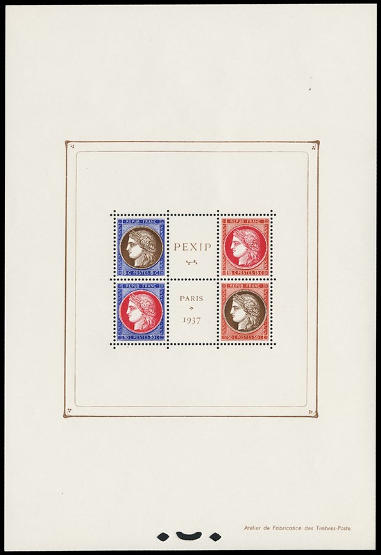 1937 - Francia: PEXIP, tre foglietti, SL (Yvert BF3 - Euro 2.400)