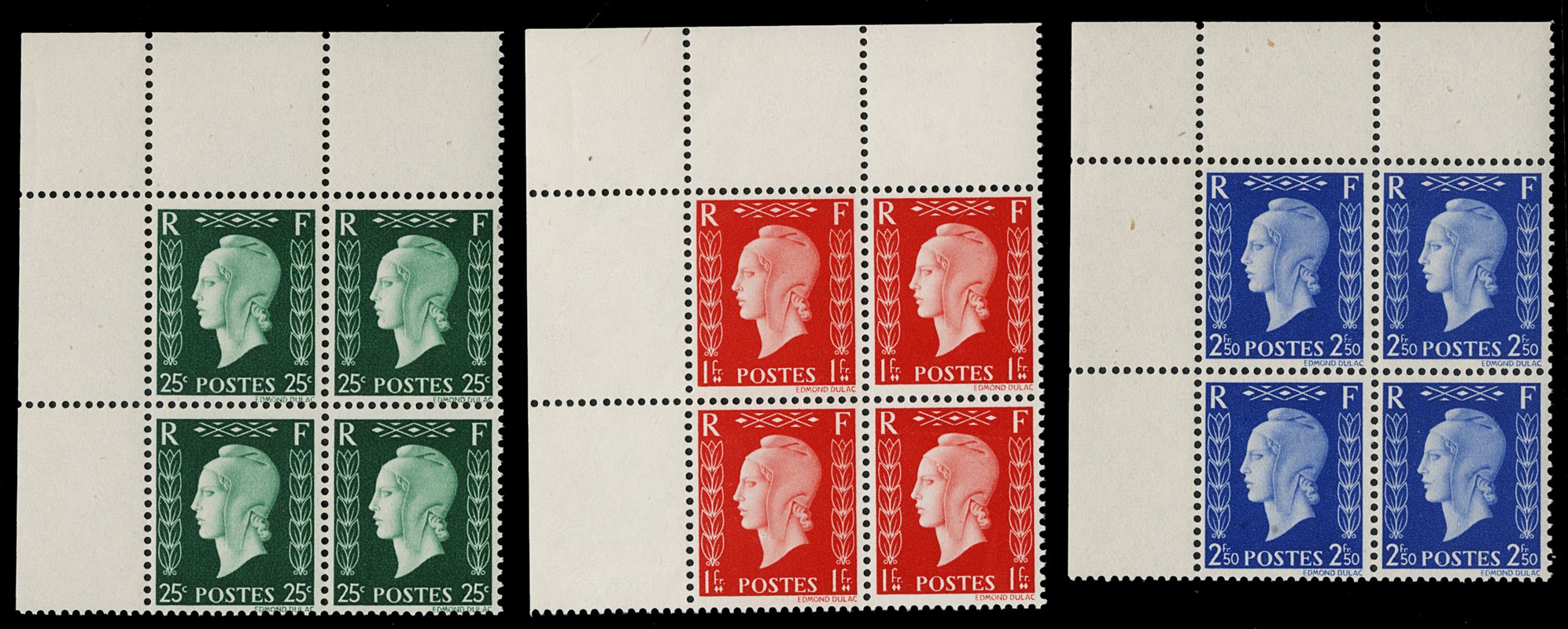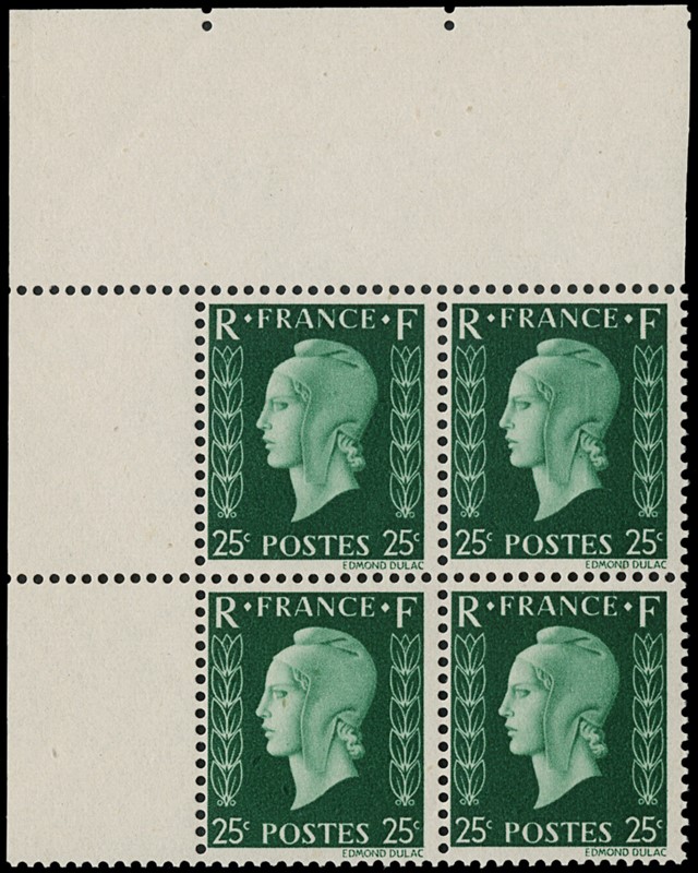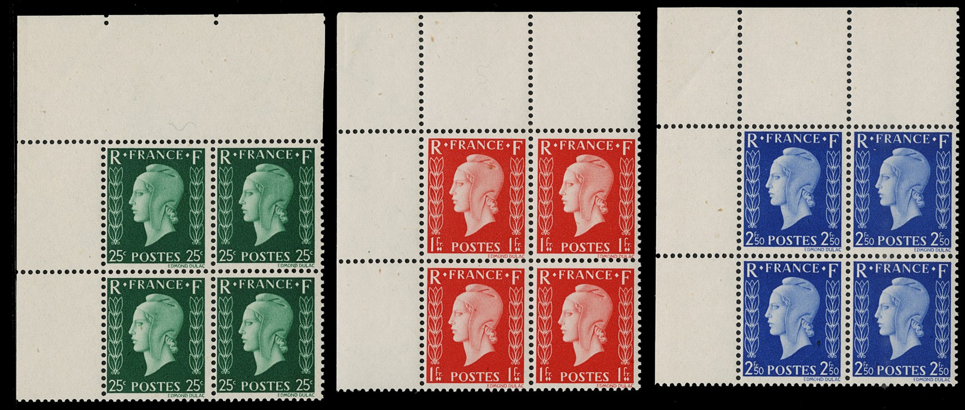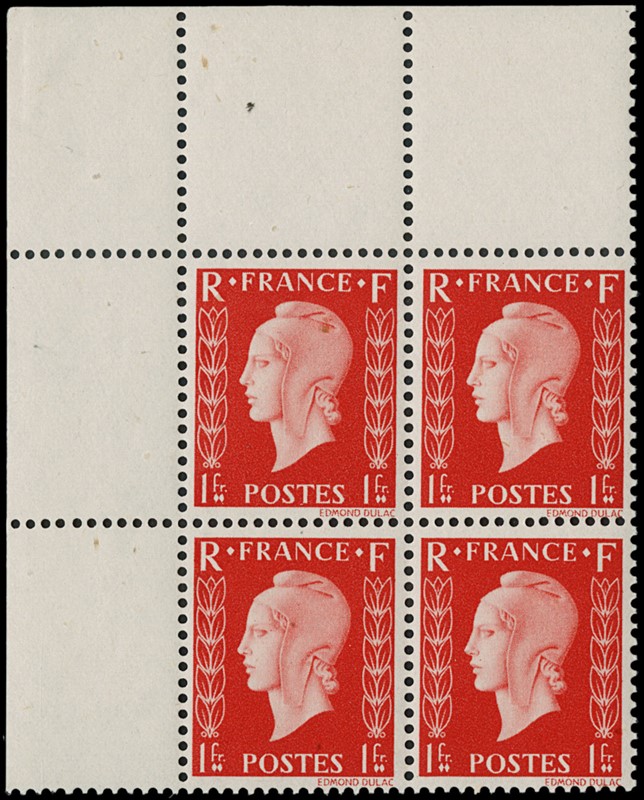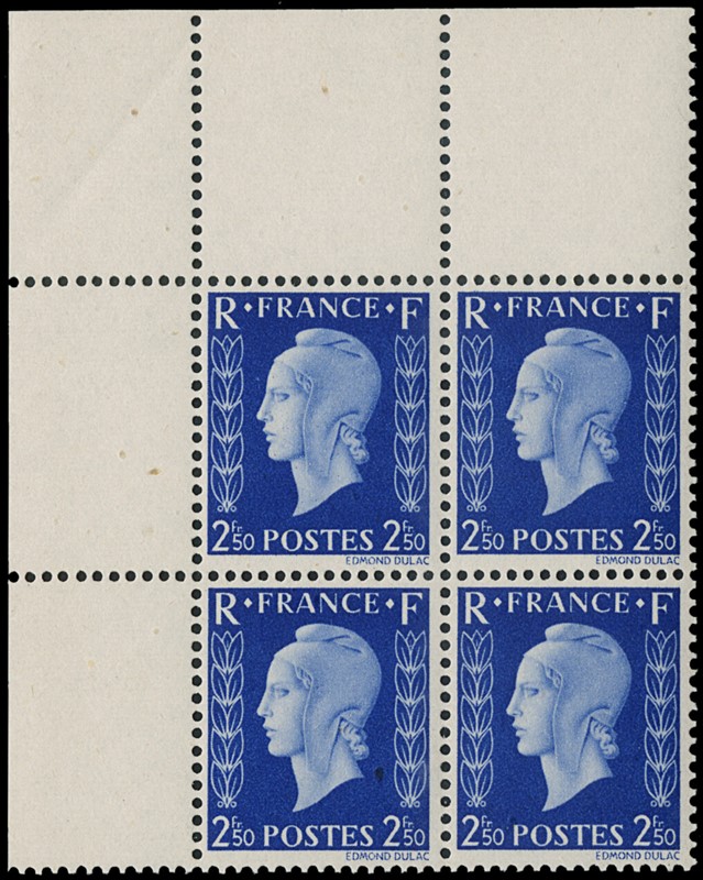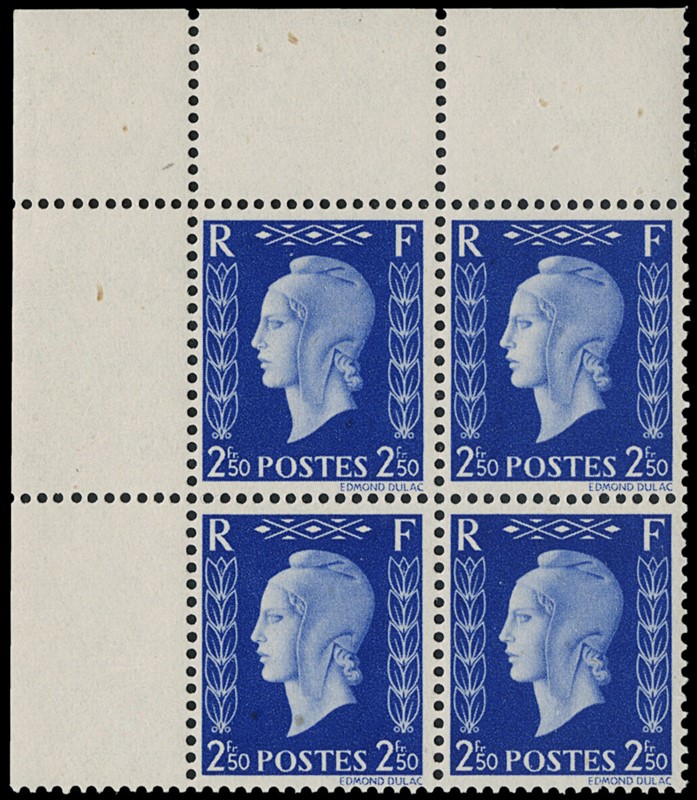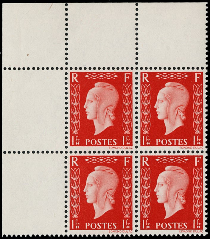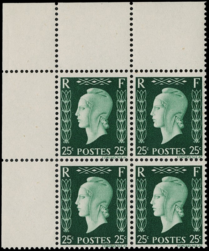 1942 - Francia: Marianne de Dulac, la serie completa di sei valori in BL4 AdF, SL (Yvert 701A/F - Euro 3.840)