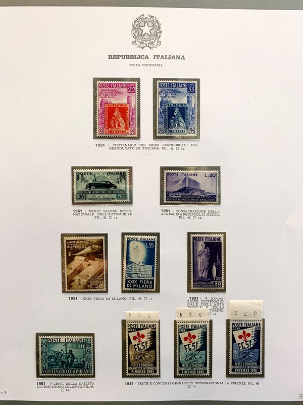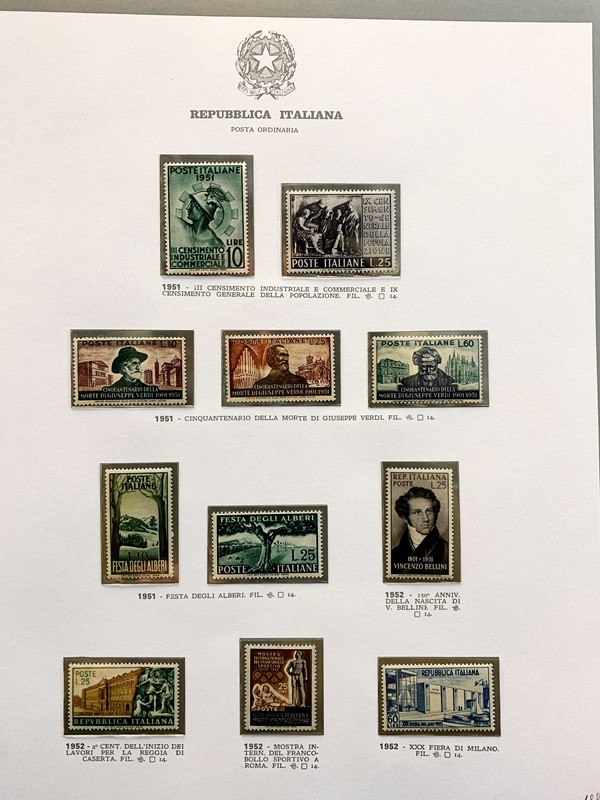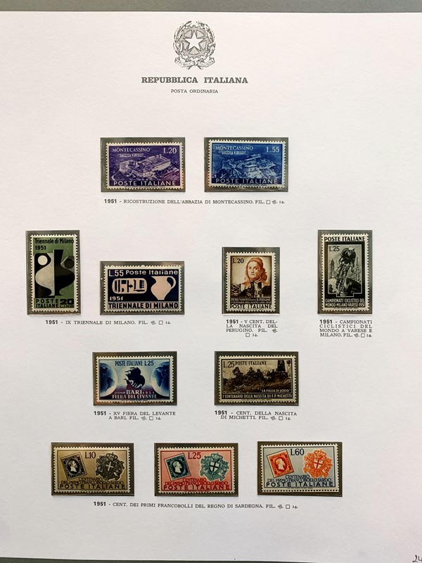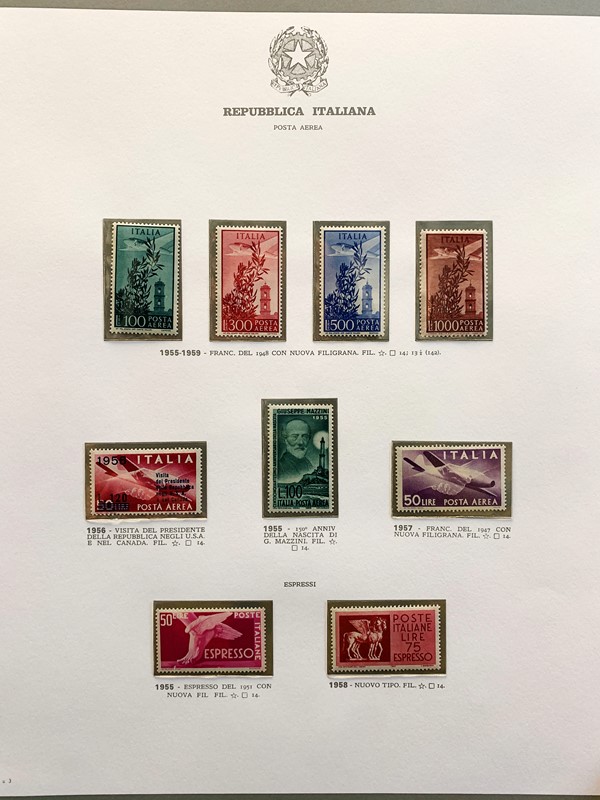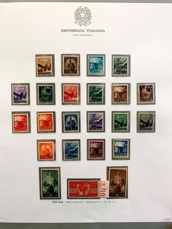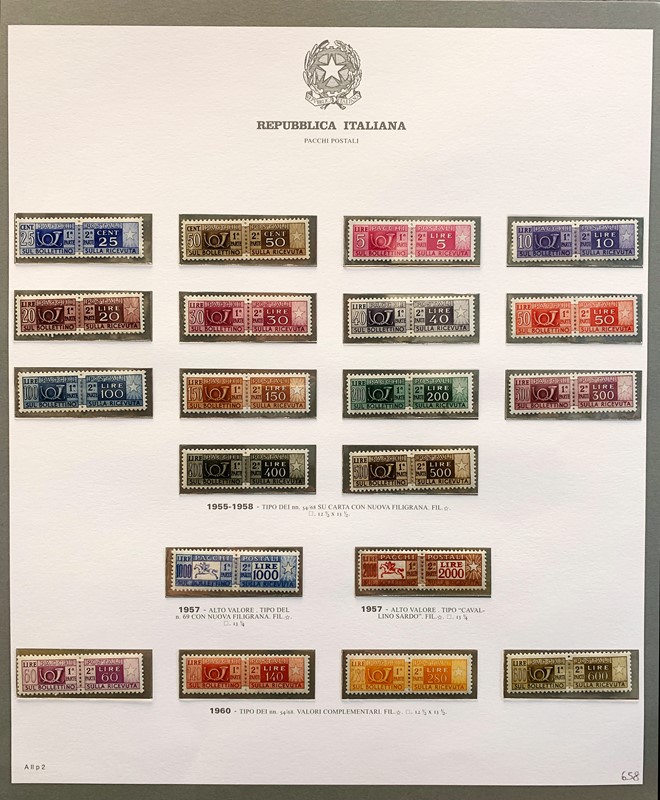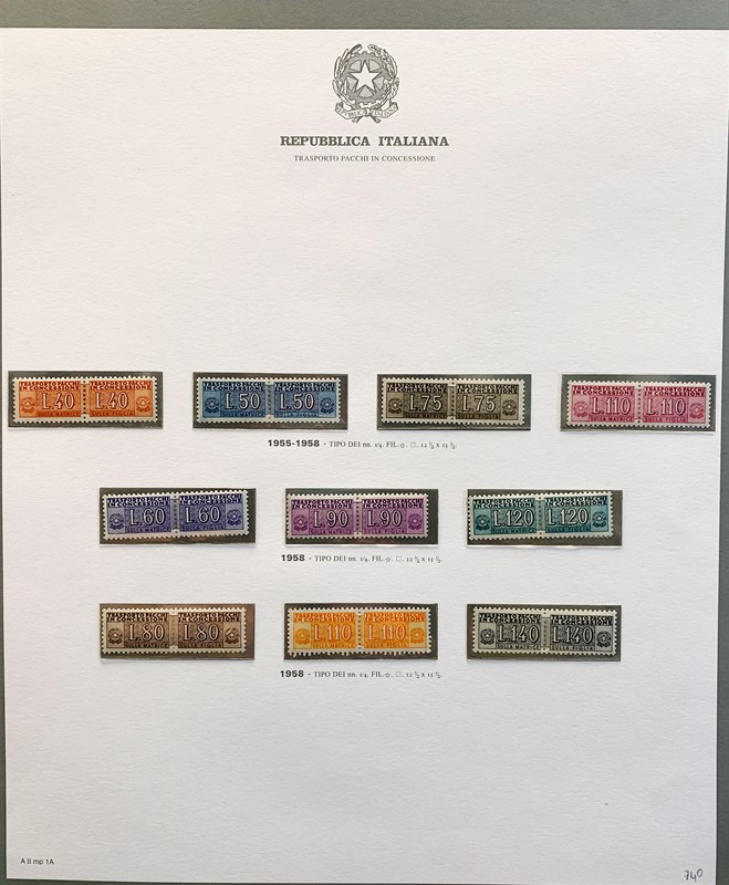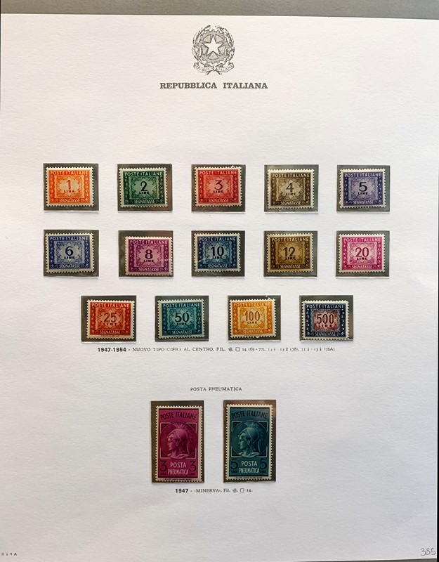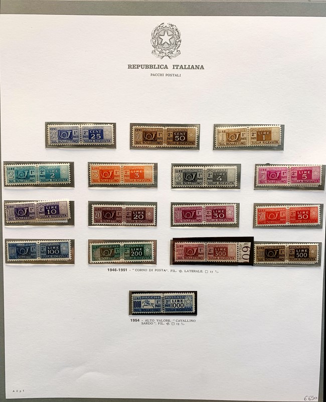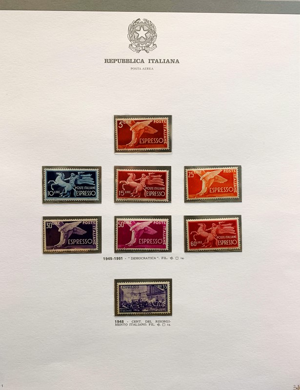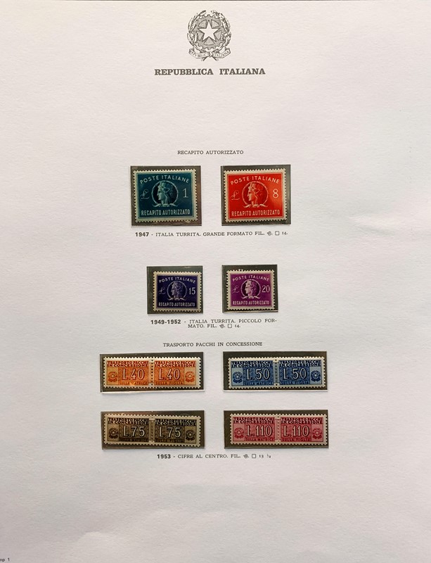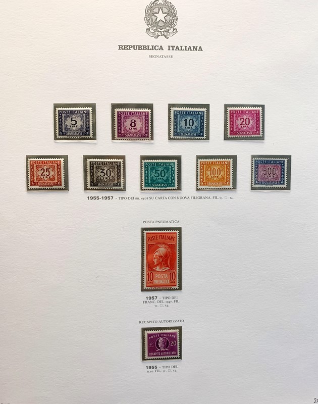1945/61- REPUBBLICA: collezione completa di francobolli SL del periodo, comprendente PO, PA, RA, PP, Pacchi in Concessione, Tasse e Posta Pneumatica. Presenti: Gronchi Rosa, 300L Pacchi BdF e Cavallino 1.000L. Il tutto raccolto in un album Bolaffi, 7 CF (Sassone oltre Euro 17.000)