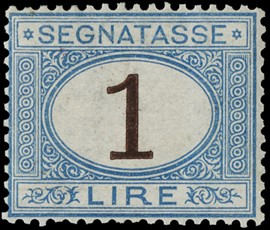 1870 - Postage-due 1L blue and brown, good/very good centering. Sign. A.Diena, cert. E.Diena and Manzoni (Sassone [..]