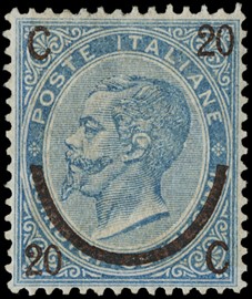 1865 - 20c on 15c light blue, “horseshoe' overprint, 3rd type, very well centered. Cert. E.Diena and Manzoni (Sassone [..]