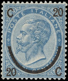 1865 - Kingdom of Italy, 20c on 15c sky blue, thir, 1865
