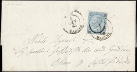 1865 - 20c on 15c light blue, “horseshoe' overprint, 3rd type, from “JESI MARCHE 1 GEN 65' to Castelfidardo. First [..]
