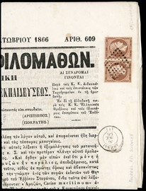 1866/73 - GREECE: Large Hermes Heads, three newspapers franked with 1 lepton: -1. 1 lepton chocolate brown 1862-67, [..]