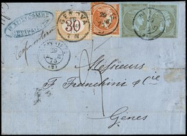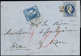 1871/73 - GREECE: Large Hermes Heads, mixed frankings with Levant: 1871/73, Chios and Crete: -1. Franz Josef 10sld [..]