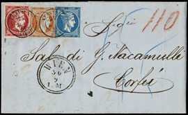 1867/75 - GREECE: Large Hermes Heads, 4 letters to Italy: -1. 5 lepta, 20 lepta and 40 lepta 1862-67, canceled [..]
