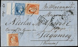 1862/63 - GREECE: Large Hermes Heads, two covers with different multi color frankings: -1. 5 lepta, 10 lepta and [..]