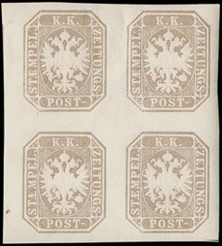 1863 - Testine (1,05s) greyish brown, BL4 with the two upper copies showing fragments of watermark, MNH. Cert. [..]
