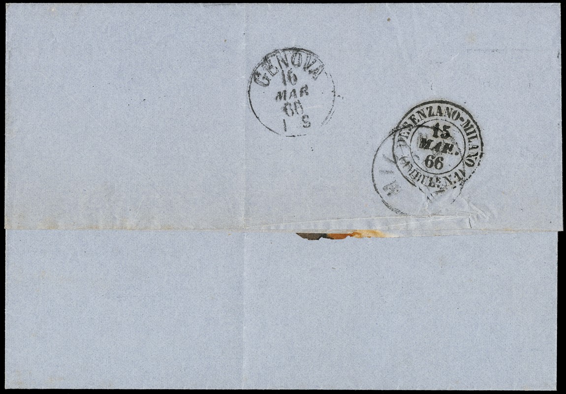 1864 - 2s yellow from 'VERONA 15/3' (1866) to Genoa (Sassone 41 - Euro 4,500)