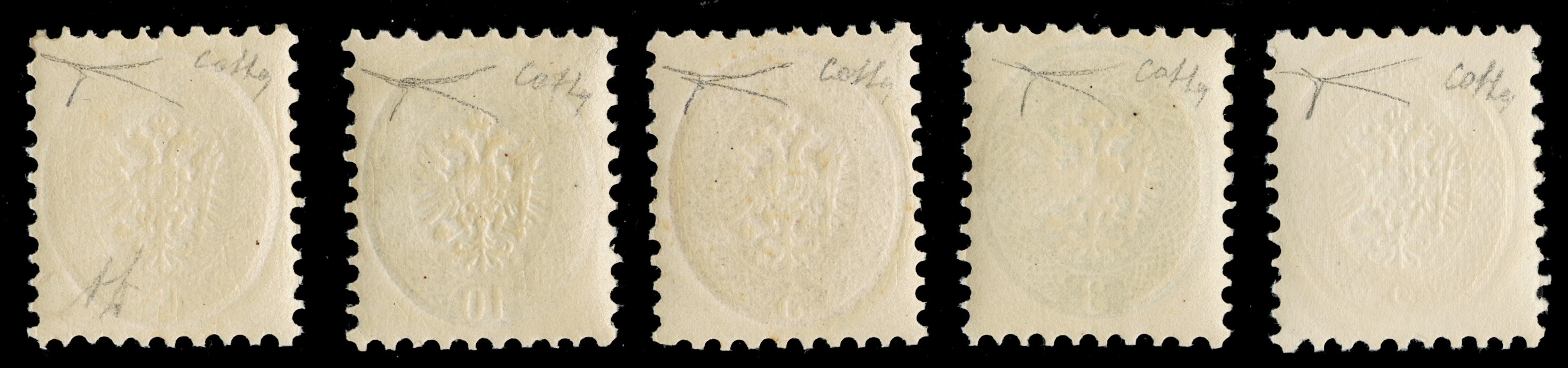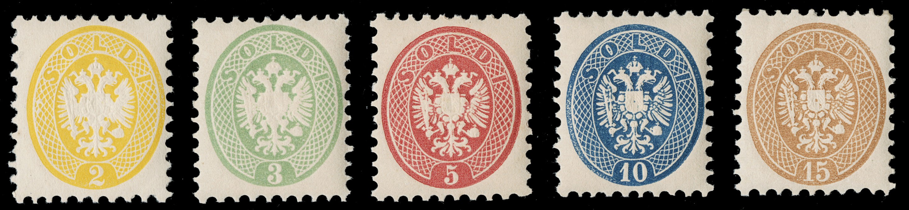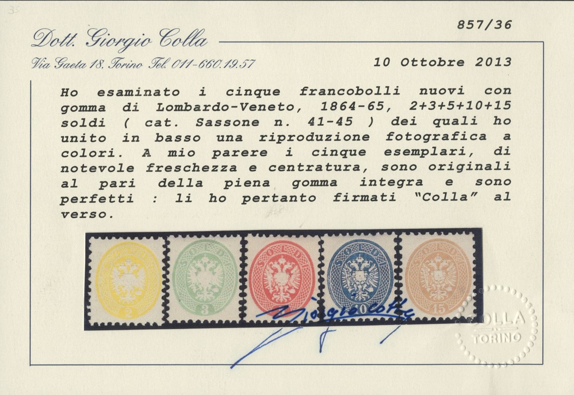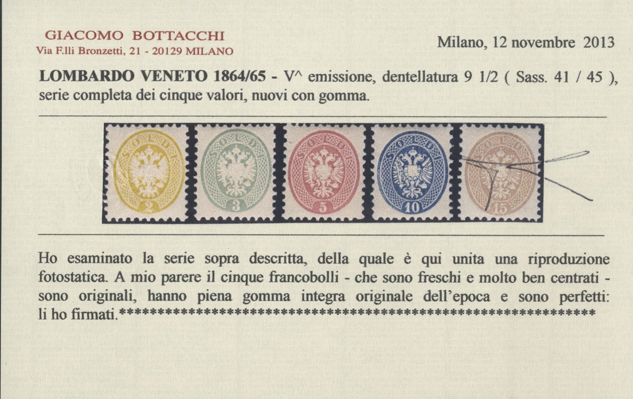 1864 - 5th issue, the complete set of five values, well-centered and mint with original gum. Certs. Bottacchi and Colla (Sassone 41/45 - Euro 6,150)