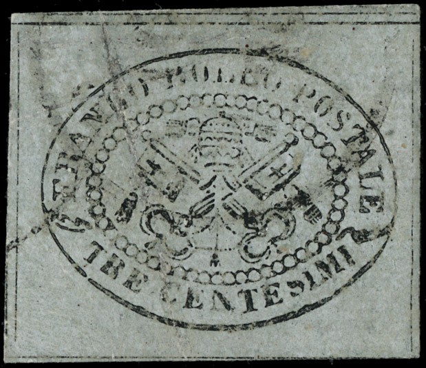 1867 - 3c grey, cancelled with part double-circle postmark. Rare. E.Diena cert. (Sassone 15 - Euro 15,000)