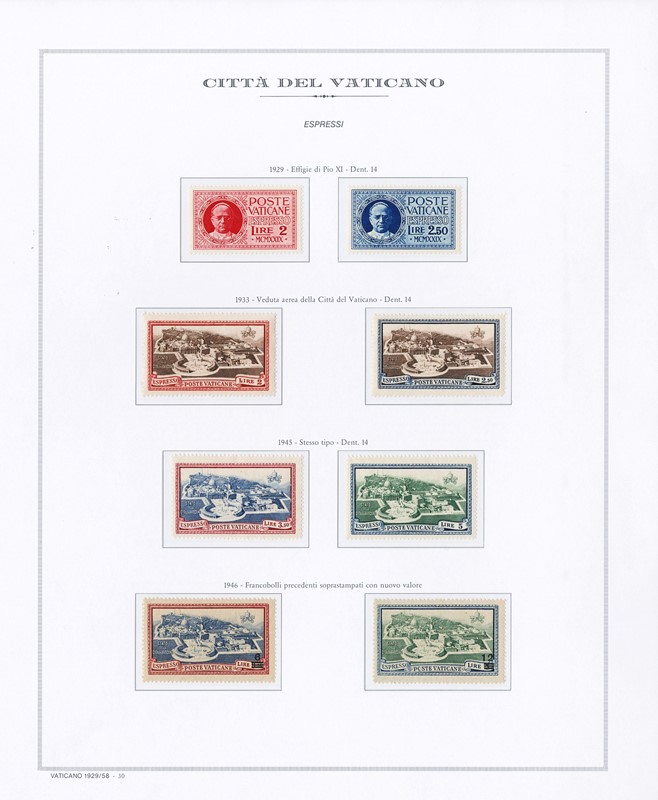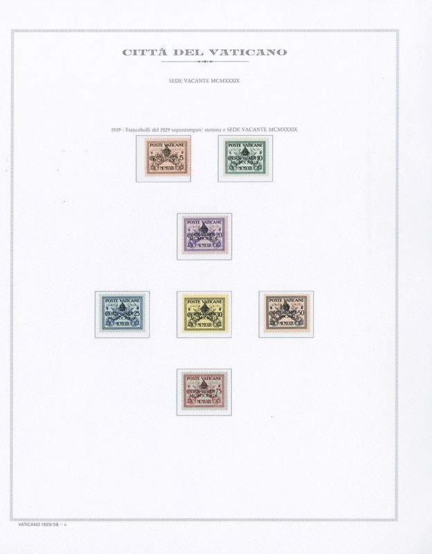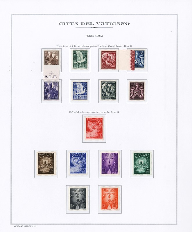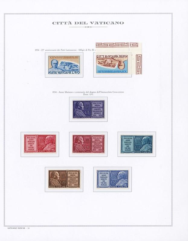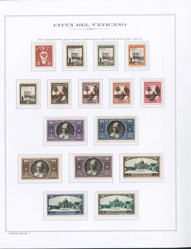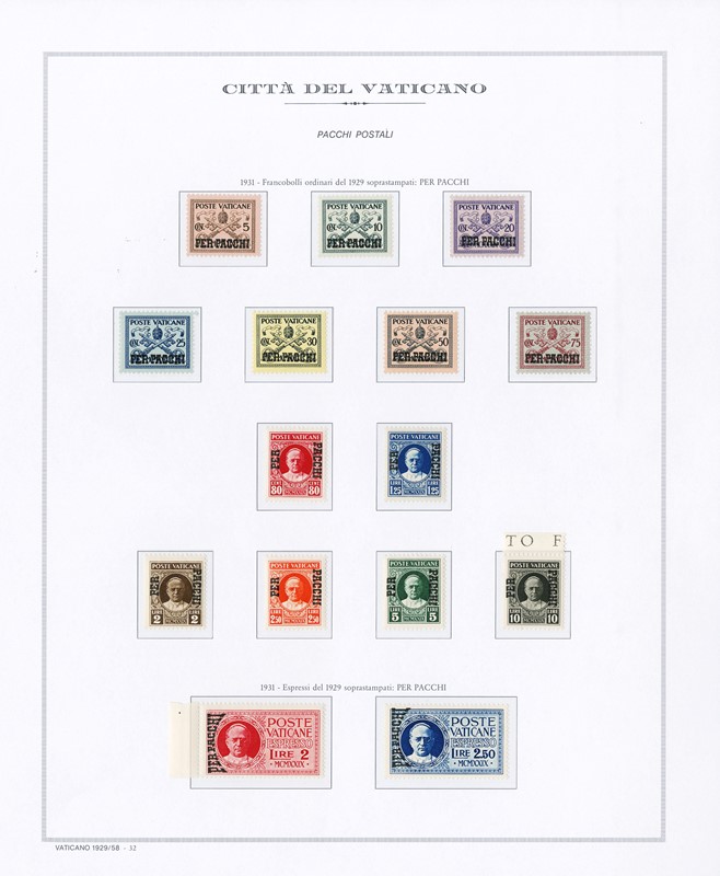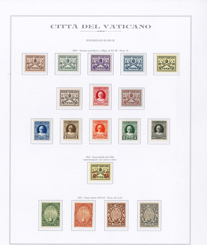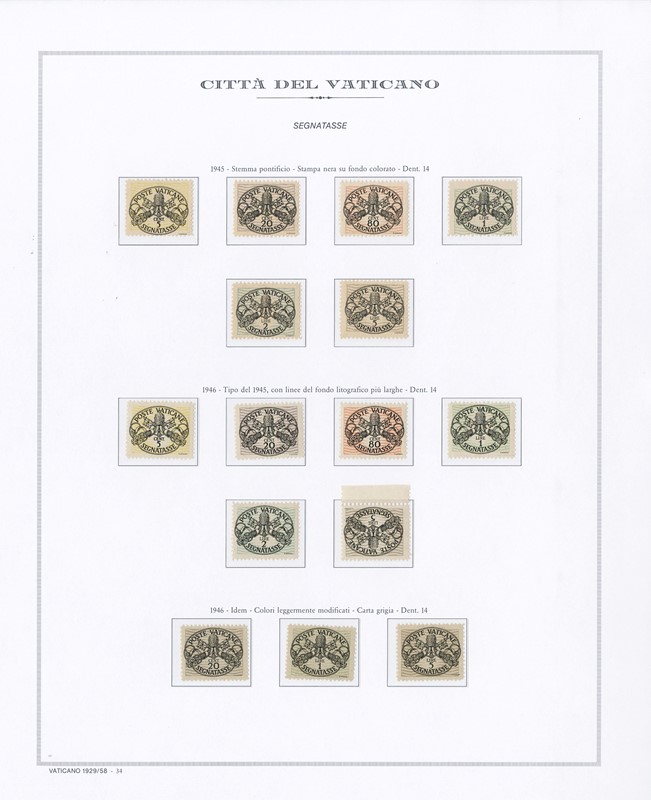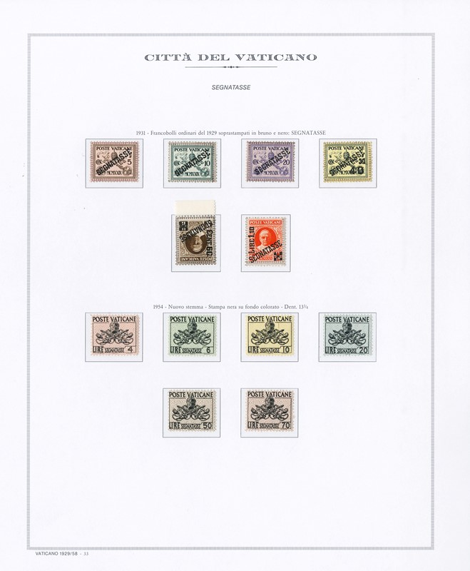 1929/63 - VATICAN: complete standard collection of MNH stamps, including services and Postage Dues 'large stripes' both in white and grey paper. Segnatasse 'wide strips' white paper and grey paper. All included in one album with Marini King sheets, 8 certs.. Great deal
