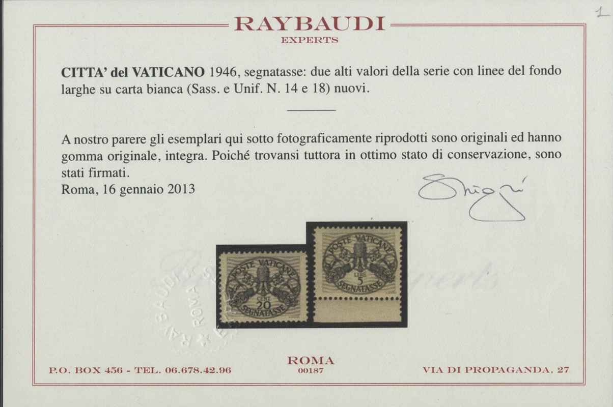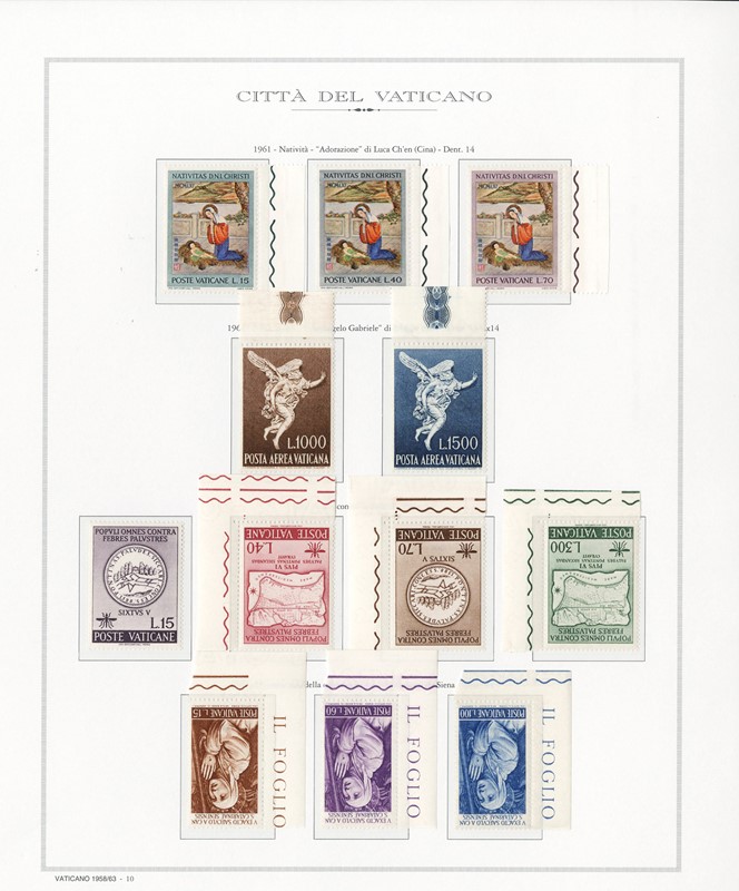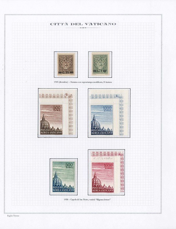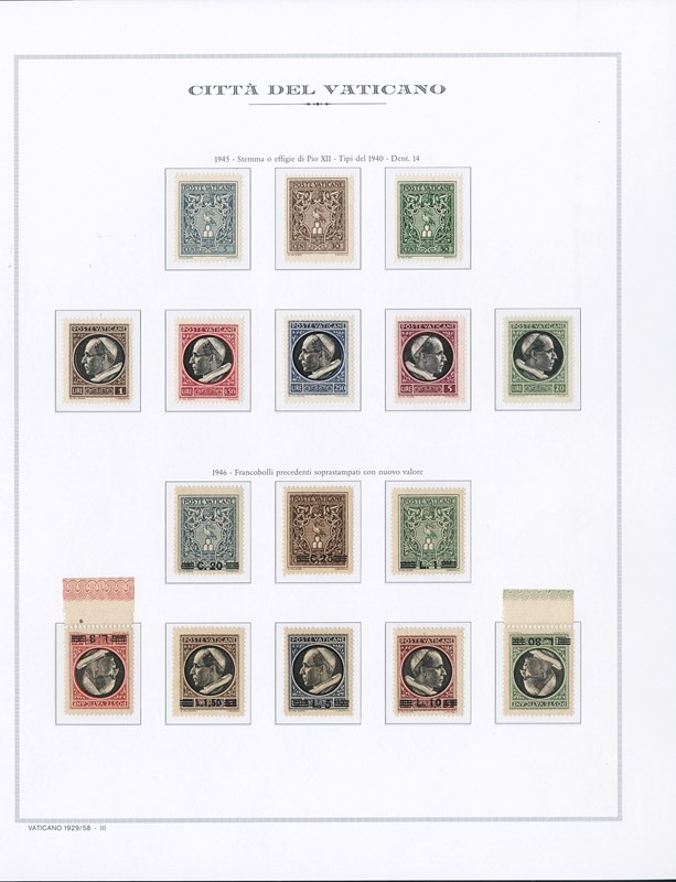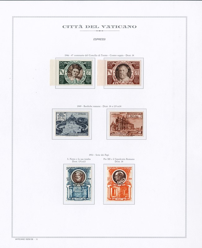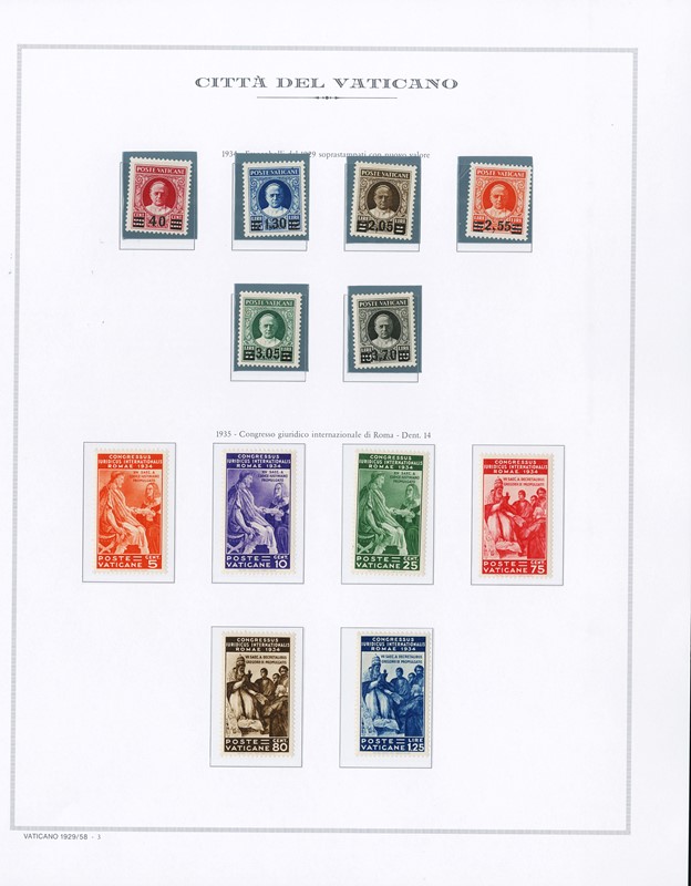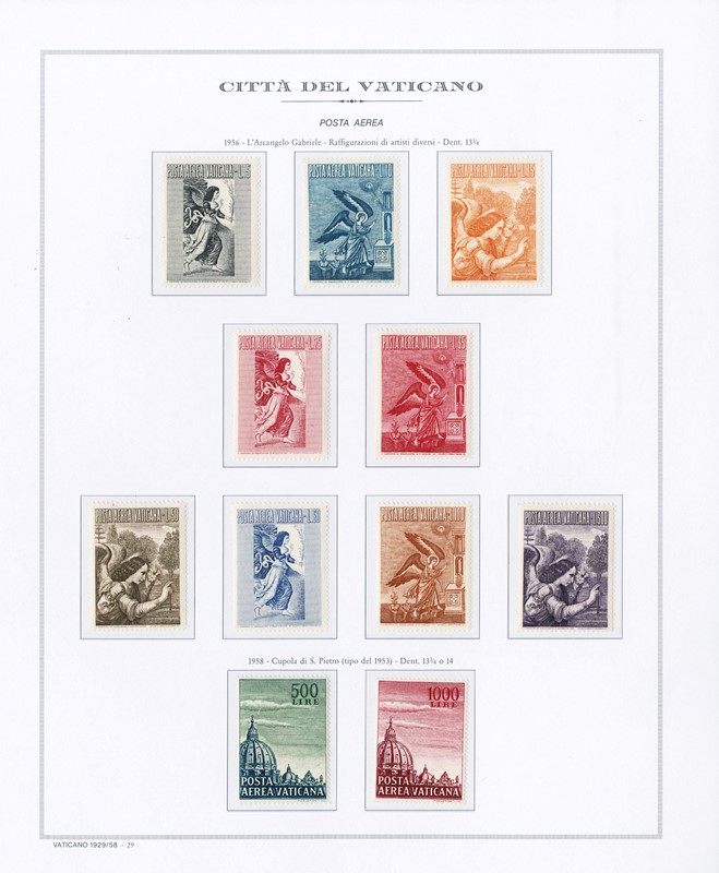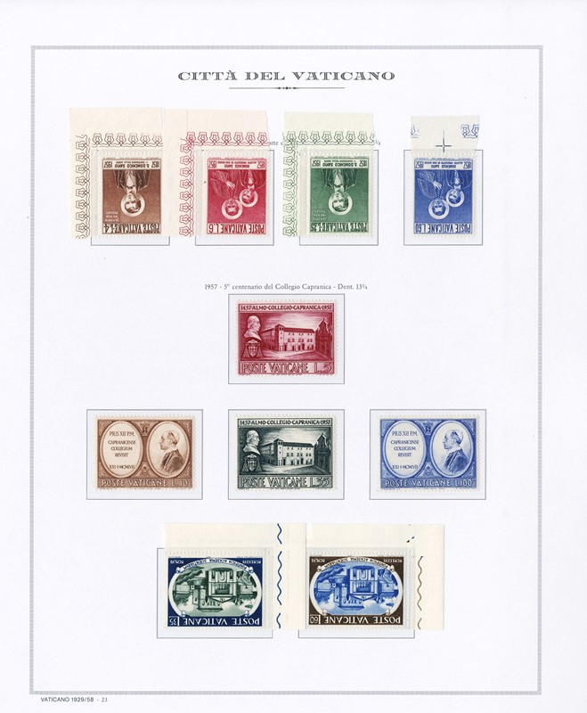 1929/63 - VATICAN: complete standard collection of MNH stamps, including services and Postage Dues 'large stripes' both in white and grey paper. Segnatasse 'wide strips' white paper and grey paper. All included in one album with Marini King sheets, 8 certs.. Great deal