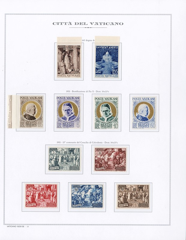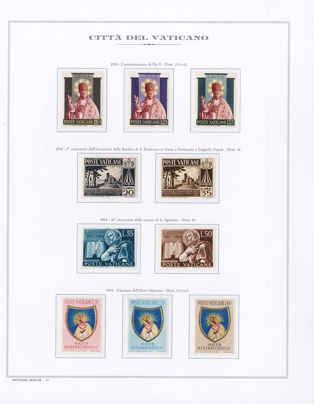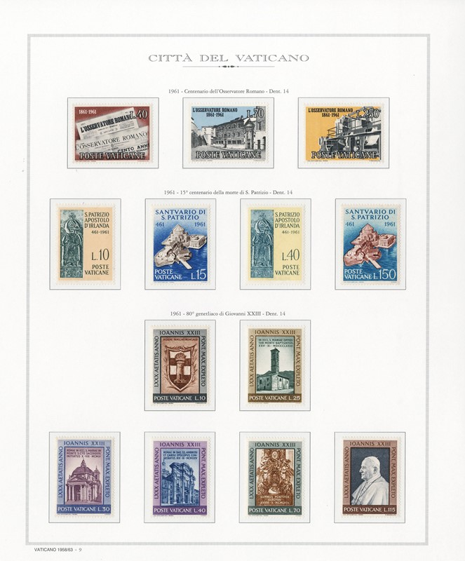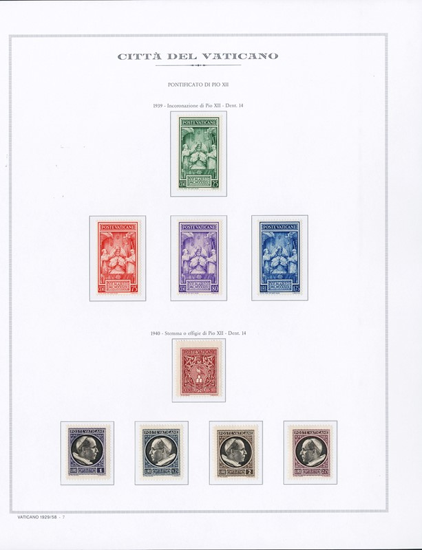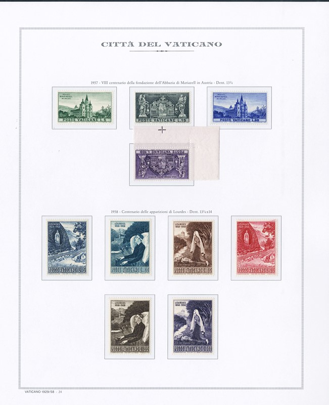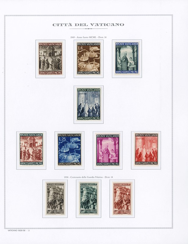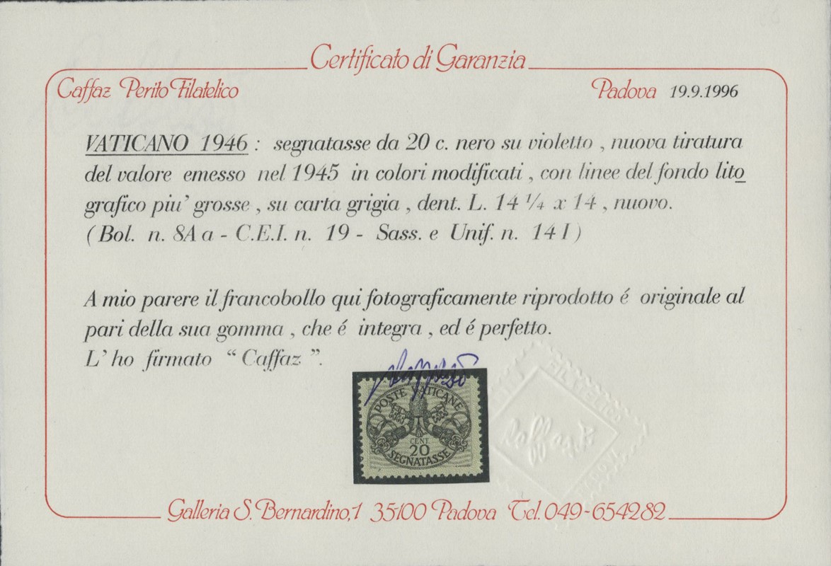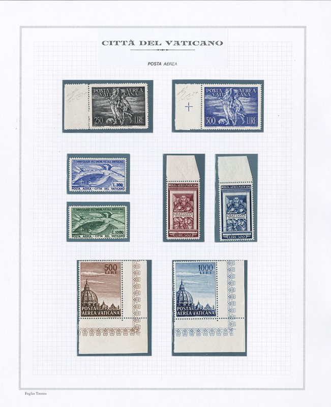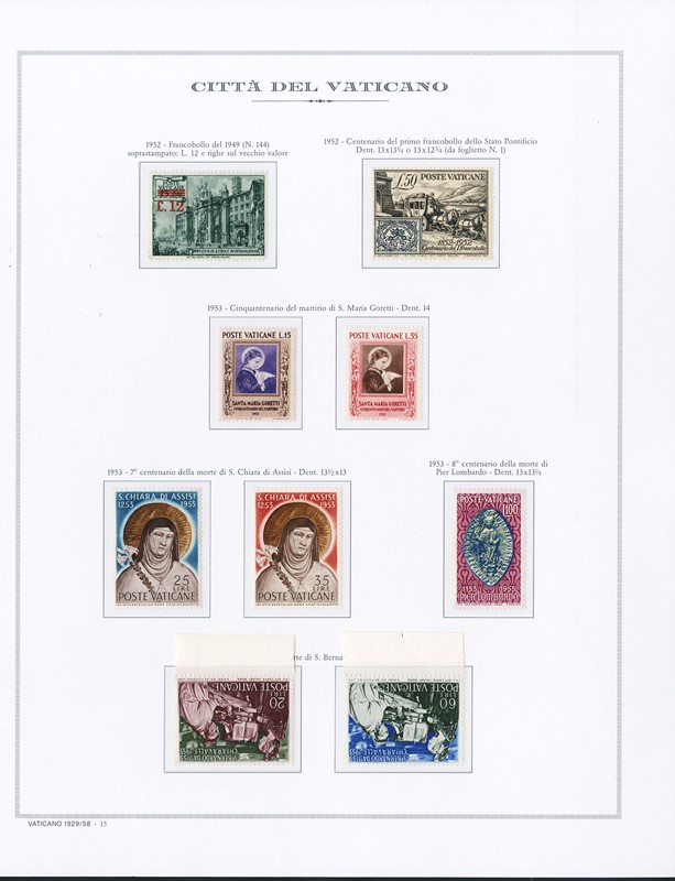 1929/63 - VATICAN: complete standard collection of MNH stamps, including services and Postage Dues 'large stripes' both in white and grey paper. Segnatasse 'wide strips' white paper and grey paper. All included in one album with Marini King sheets, 8 certs.. Great deal