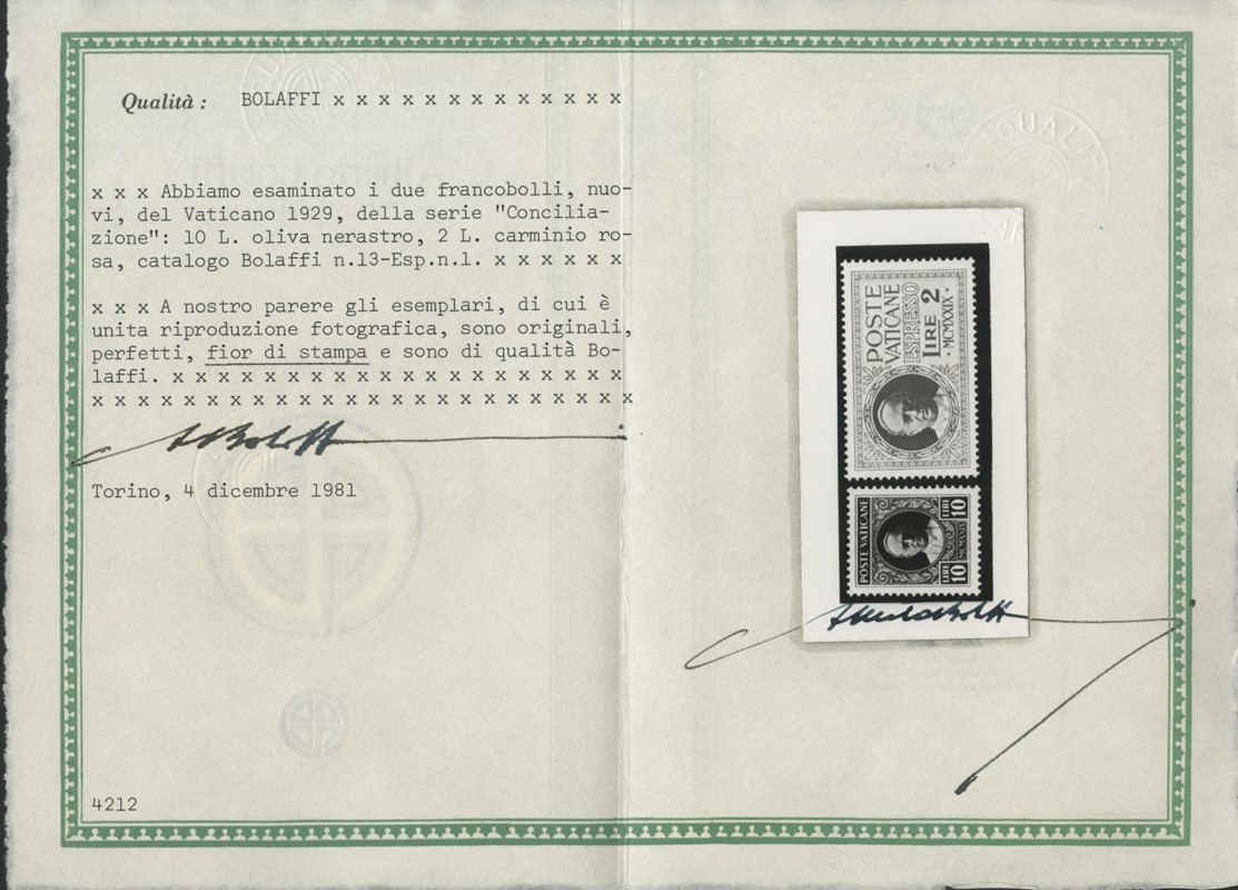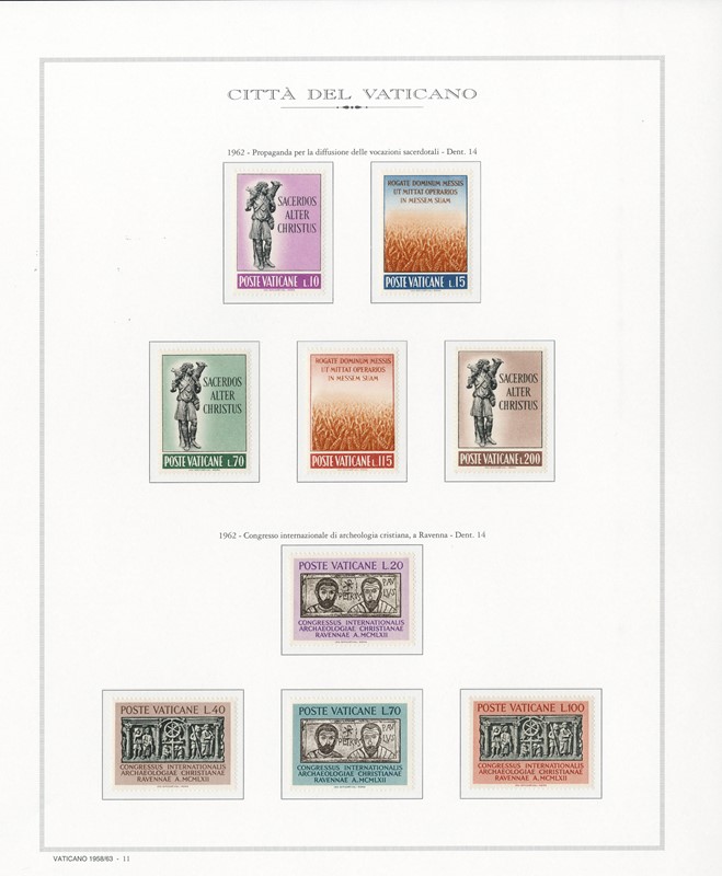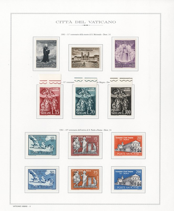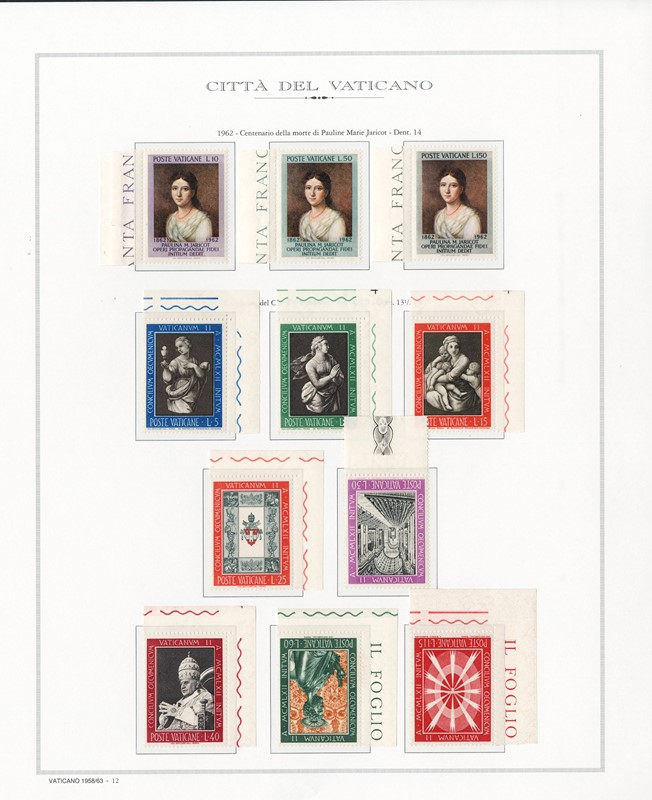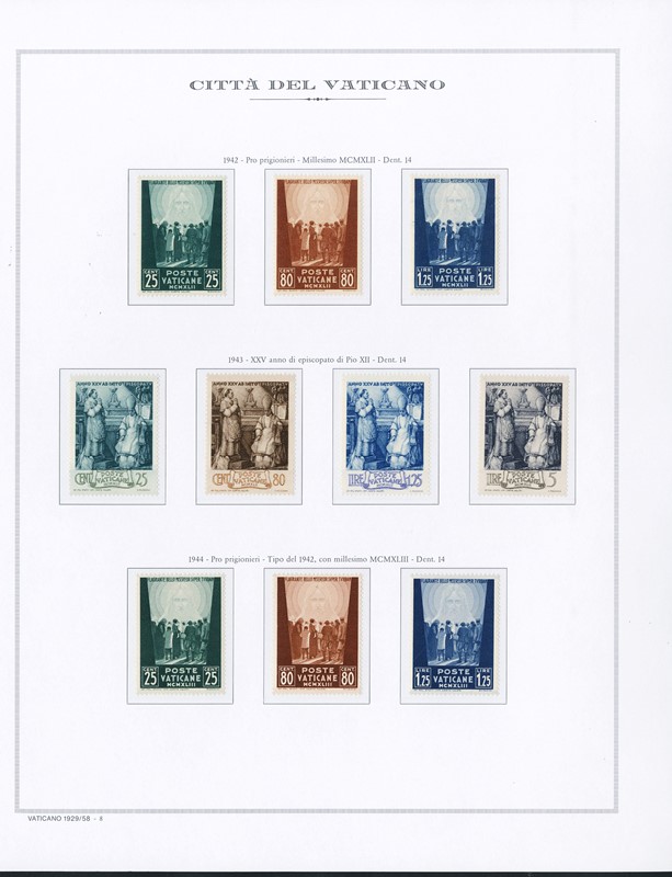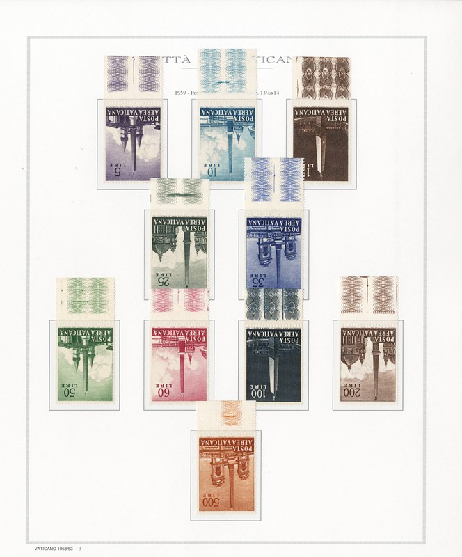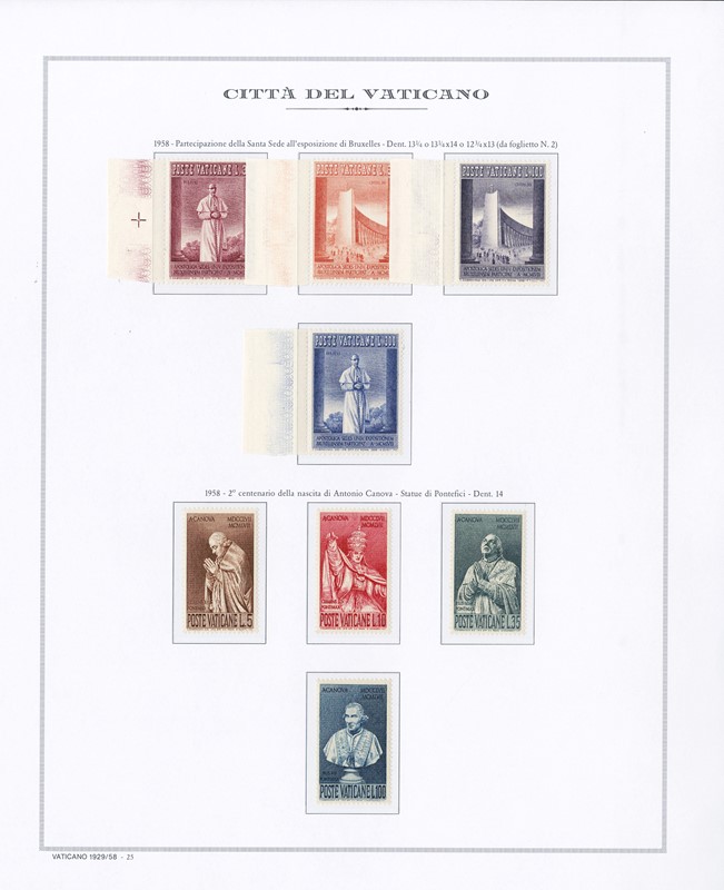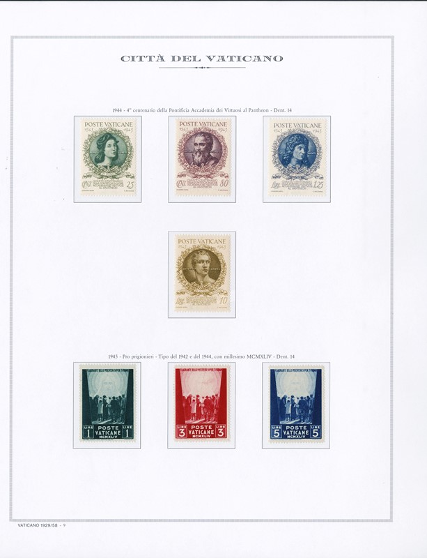 1929/63 - VATICAN: complete standard collection of MNH stamps, including services and Postage Dues 'large stripes' both in white and grey paper. Segnatasse 'wide strips' white paper and grey paper. All included in one album with Marini King sheets, 8 certs.. Great deal