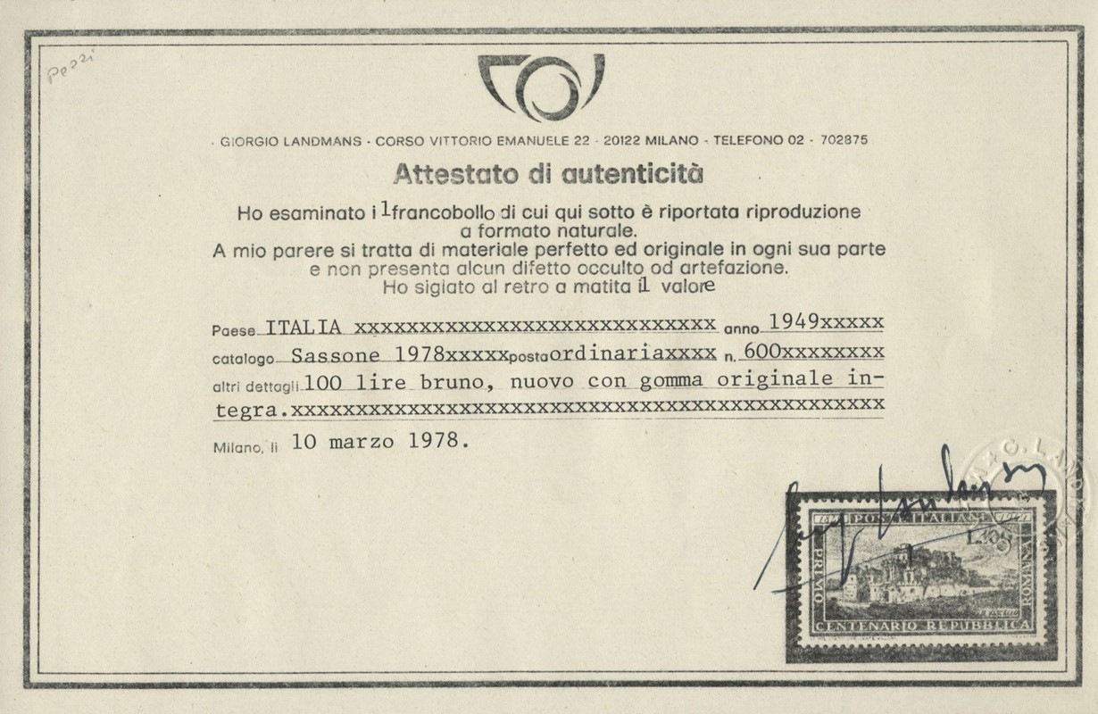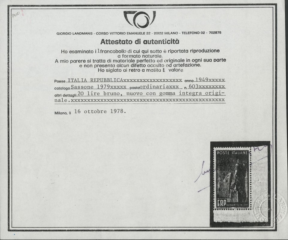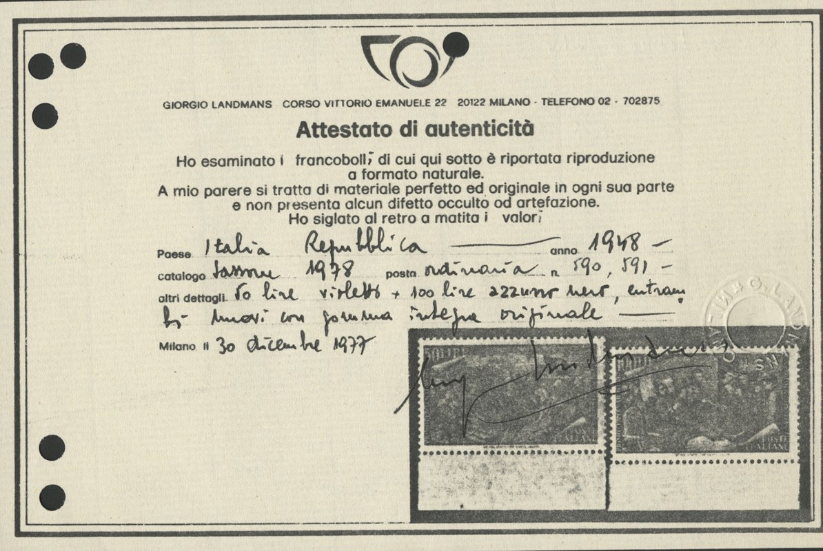 1945/2009 - ITALIAN REPUBLIC: complete collection of MNH stamps. Including all the main stamps of PO, Airmail, Parcels, and Services, with several certs. of known experts. All in Marini type sheets in 8 volumes