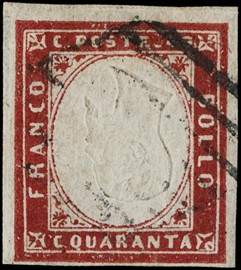 1861 - 40c carmine-red, showing inverted head, cancelled with Pontifical lozenge mute.Rare. Signed Em. and A.Diena; [..]
