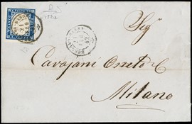 1855 - 20c deep blue, 1st plate, printing of 1859, from 'MILANO 28 DIC 59' to Casale. An extremely rare cover [..]