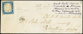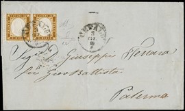 1860 - 2gr light blue, 3rd plate, from 'PALERMO 20 MAG 60' to Polizzi. Interesting and rare usage during the Garibaldian [..]