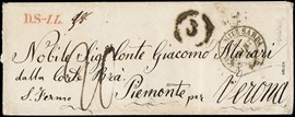 1855 - Unfranked cover from 'R POSTA MIL.E SARDA 4 MAR. 56' to Verona, forwarded to destination via Genoa, with [..]
