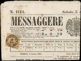 1855 - Newspaper 'Messaggere di Modena', dated 3 M, 1855