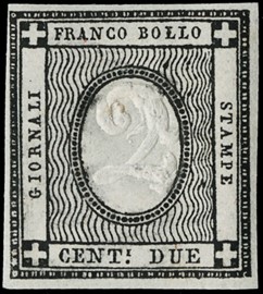 1861 – 2c deep black, MNH. Cert. E.Diena (Sassone, 1861