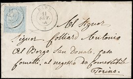1863 - Kingdom of Italy 15c light blue, De La Rue, London printing, from 'BARD 11 SET. 64' to Turin. Superb. Cert. [..]
