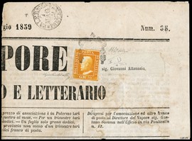 1859 – 1/2gr bright orange (Palermo), 2nd plate, pos. 17, on newspaper heading 'IL VAPORE' from 'PALERMO PARTENZA [..]