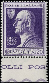 1927 - Volta, 20c violet with sheet margin, MNH and well centred. Cert. Manzoni (Sassone 210A – Euro 9,750/14,7 [..]