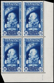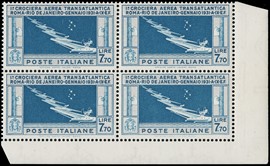 1930 – Transatlantic Flight of General Balbo, 7.70L light blue and grey, block of four with corner margin, MNH. [..]