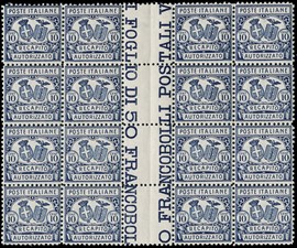 1922 - Express, 1.20L blue and red, block of four with sheet margin (Sassone 8 - Euro 4,000+)